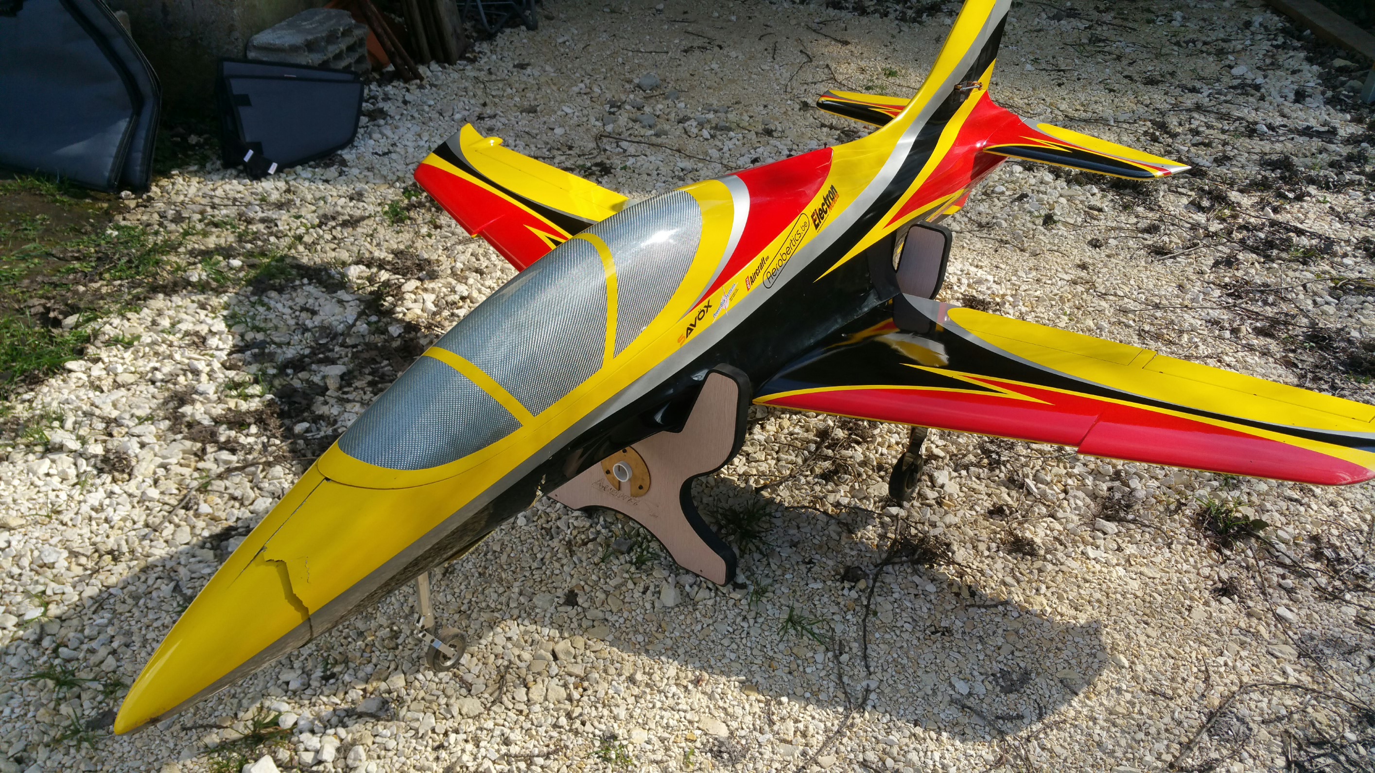 Suite à atterrissage un peu trop court , je vends un Avanti S Krill. Seul le nez est abîmé mais assez facilement réparable, la bulle et le train avant sont intacts.