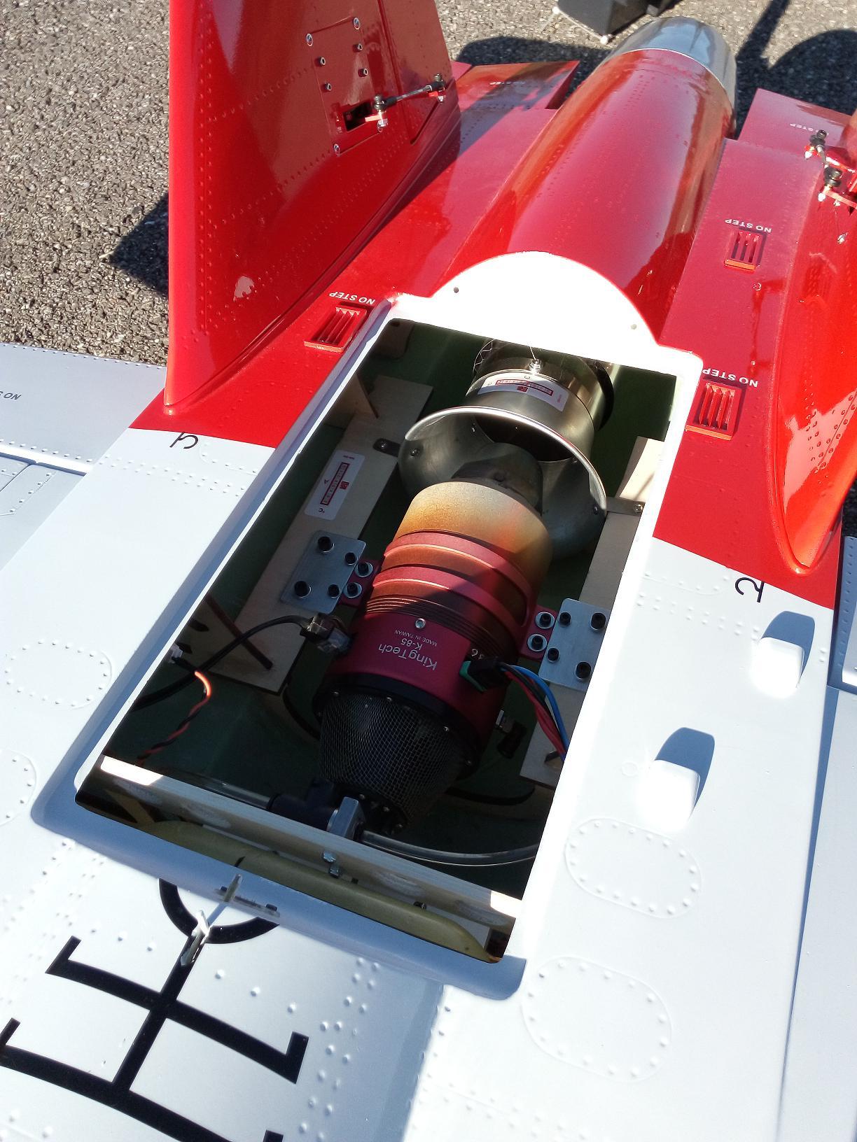 Il est livré en version PNP : déco réalisée, train rentrant électrique + freins, phares et feux de position, réservoir, uat, tuyère, servos installés, cockpit semi maquette. Il ne reste qu'à installer le réacteur, l'électronique de réception et un pilote.