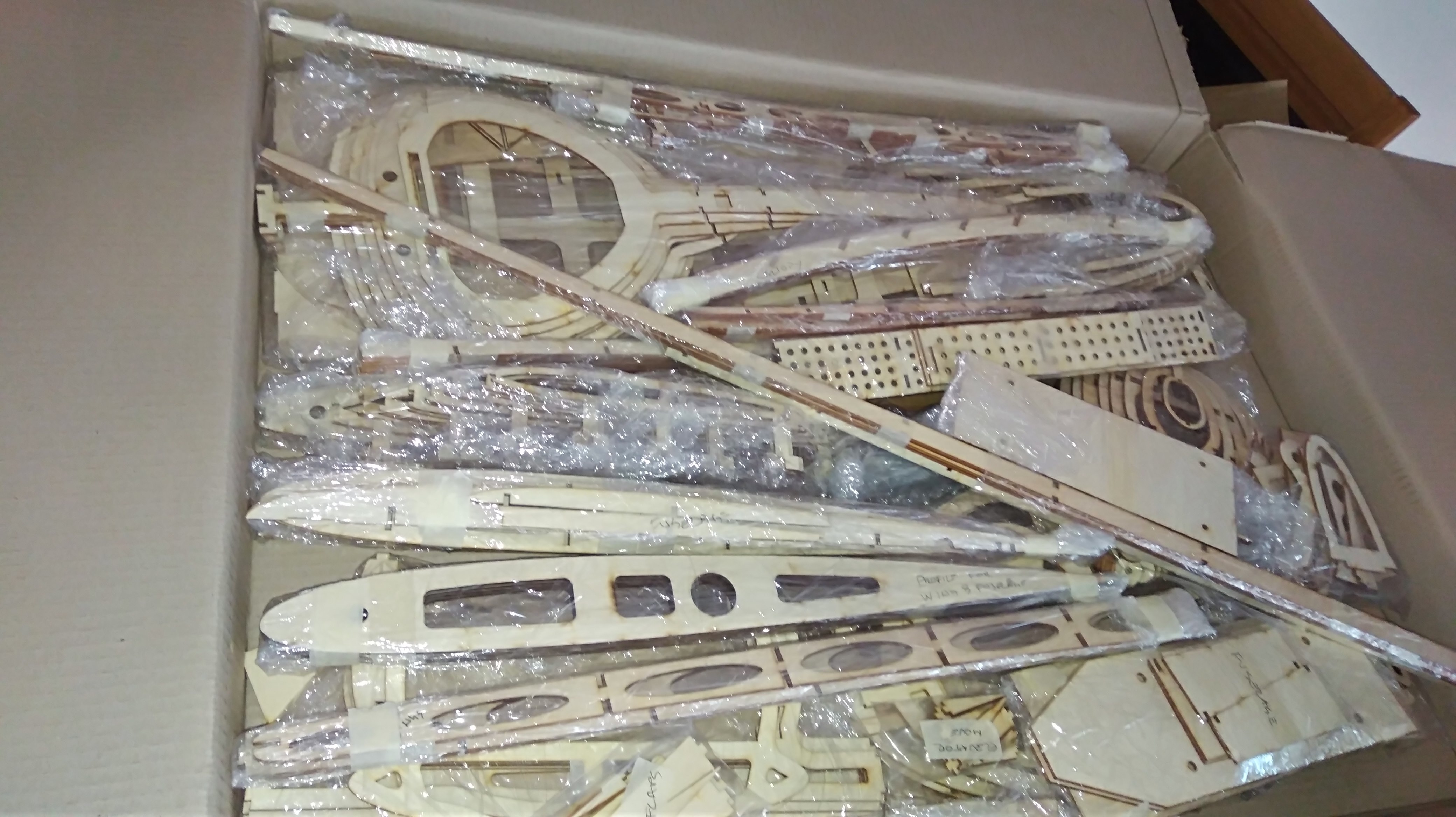 Tout est découpé Lazer ; des paquets de pièces, étiquetés pour s'y retrouver ( fuselage, wing, stab...)