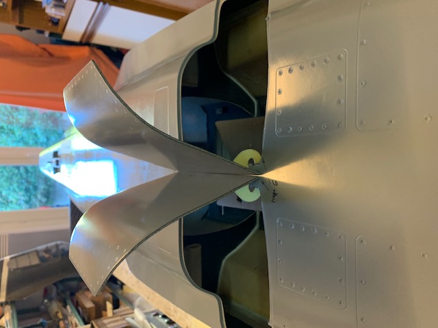 Attention de positionner les axes de rotation des charnières pas trop près du centre du fuselage pour éviter qu’à l’ouverture celles-ci ne se gênent.