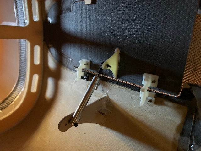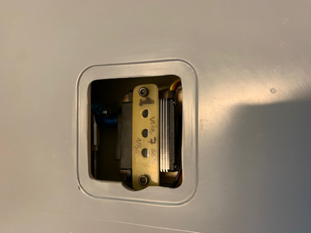 Pour ce faire j’ai réalisé 4 supports spécifiques qui seront collés sur la peau intérieur de l’extrados par l’accès prévu, avec démontage rapide du servo.