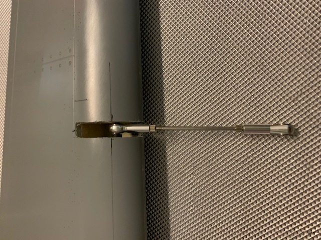 La commande est entièrement cachée et l’articulation prévue par le fabricant se faisant par un axe amovible proche de l’intrados, la commande vient attaquer un axe créé presqu’au centre du volet proche de l’extrados. Cet axe est démontable également.