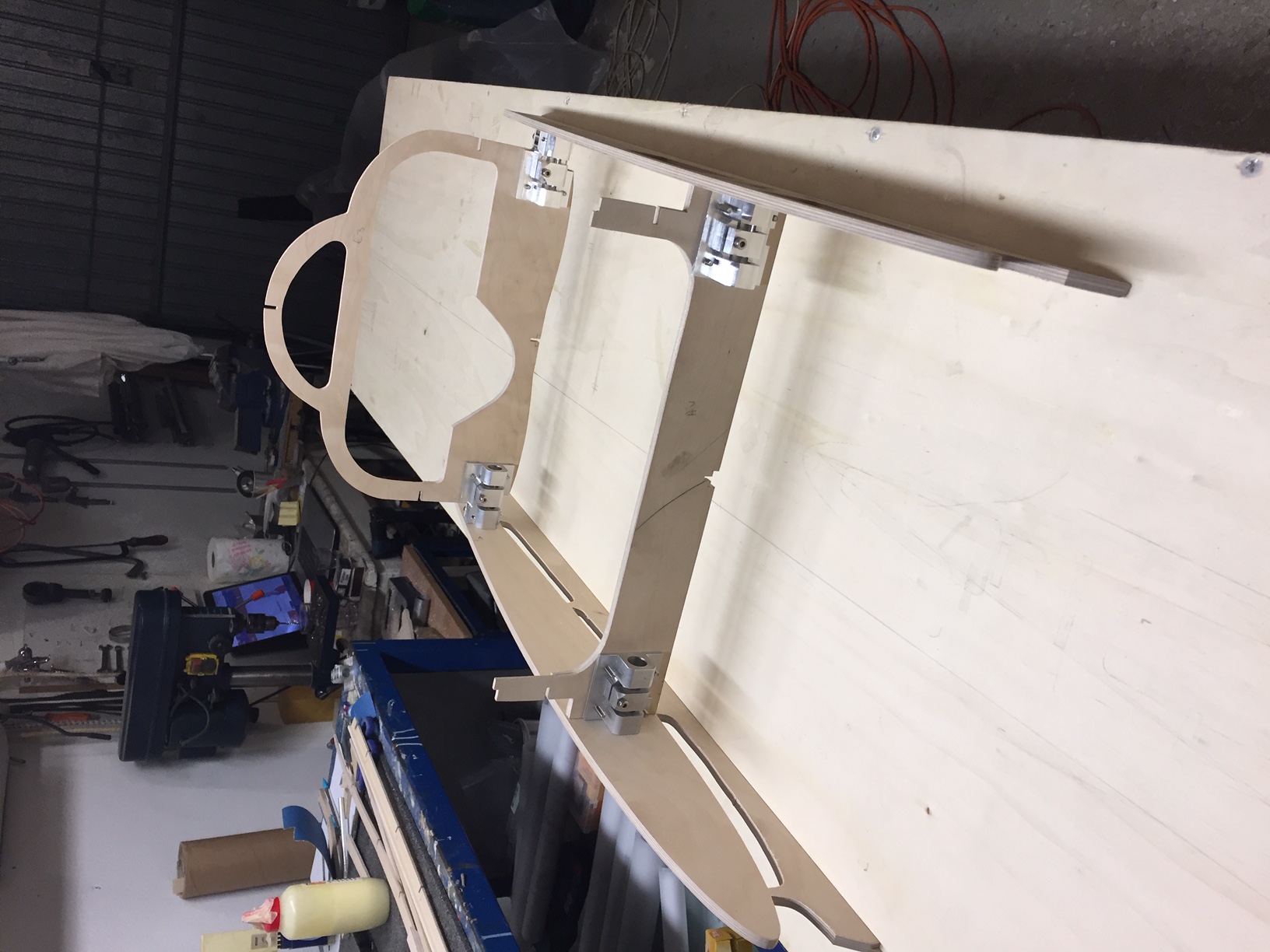Bonjour à tous, aujourd hui c est de l alu que l on travaille (du 7075 tres resistant et qui s usine tres bien). Les clés d aile seront des joncs de carbone de 14mm, et il y a deux clés par aile, et je pense que ce sera la partie la plus delicate dans la construction. En effet il va falloir que ces clés soit parfaitement paralleles (vue de dessus) et alignées (vue de profil), sinon l aile ne plaquera pas contre le fuselage. L entraxe, lui, est reglable grâce a l ingenieux systeme de l auteur (trous oblongs dans les nervures et rondelles bois a ajuster/coller. L aisser du jeu dans les support (alu, en faisant un alesage "un peu grand") pour pouvoir plaquer l aile et ensuite "rattraper" le jeu par le serrage n est pas envisageable (pour moi). Il va falloir etre precis, nervures d emplantures et couples devront etre le plus plan possible et le collage des couples/nervures parfaitement perpendiculaire. Prochaine etape les suports arrieres qui seront sur le meme principe mais de forme differentes car peu de place. Photos