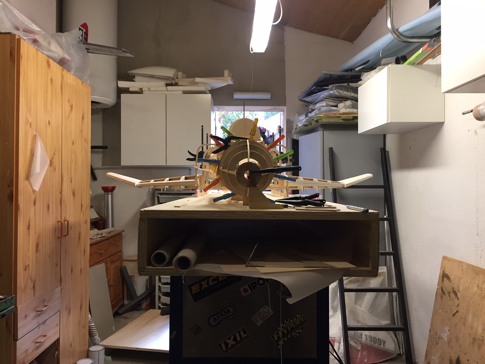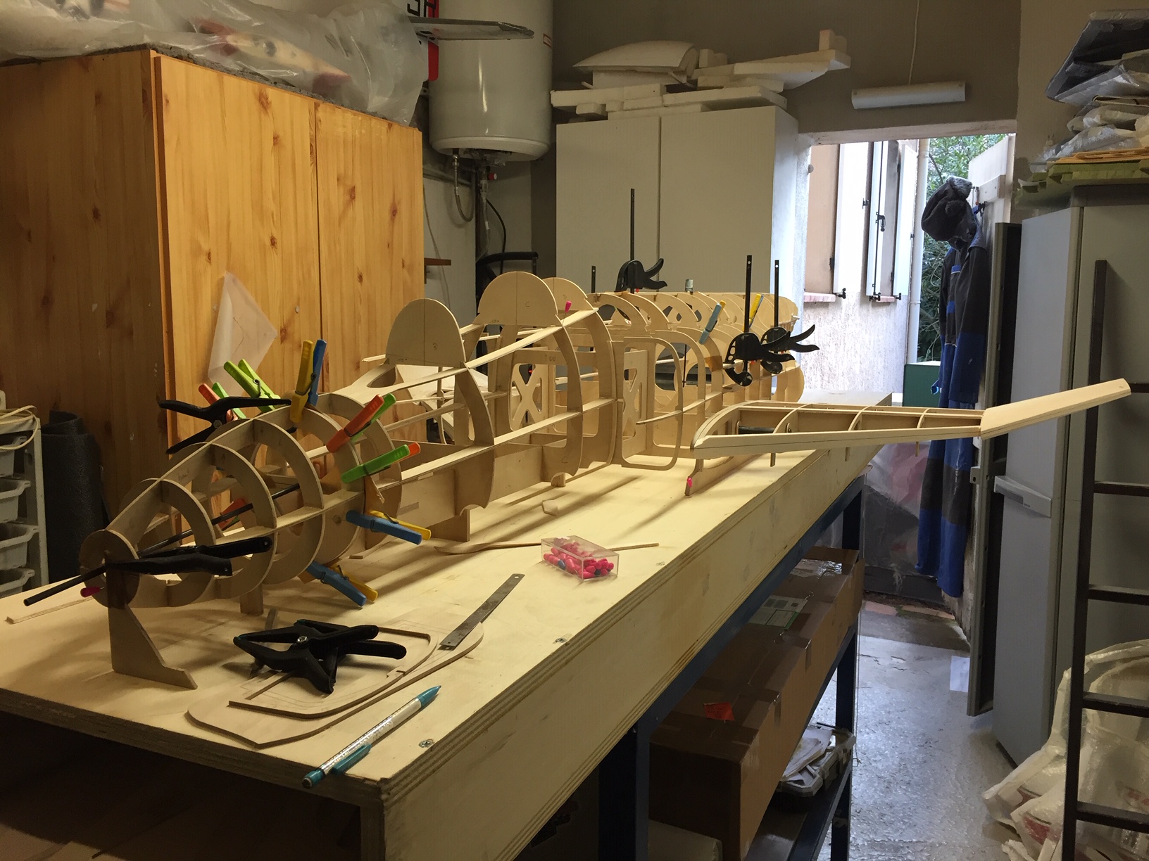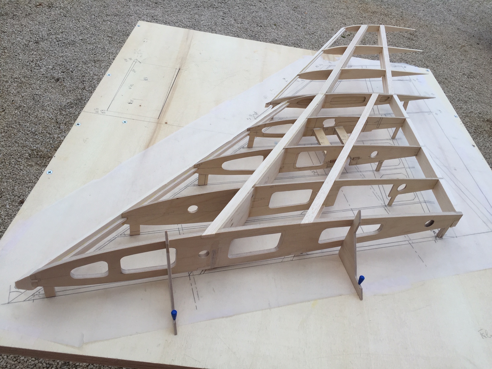 Bonsoir à tous, merci Hubert pour tes encouragements. Fin des supports arriére ils ont une forme un peu differente, et sont un peu plus lourd. Un petit montage sur les couples/nervures. Les nervures d emplanture sont en 2x3mm ctp bouleau (car je n ai pas trouvé de 6mm bouleau aviation en 1 metre de long, j en ai profité pour ajourer celle que j ai collé coté exterieur, (vu sur une photo de l auteur).Prochaine etape: les ailes, par contre je n ai plus d avance sur la construction les posts vont donc etre plus espacés. Photos