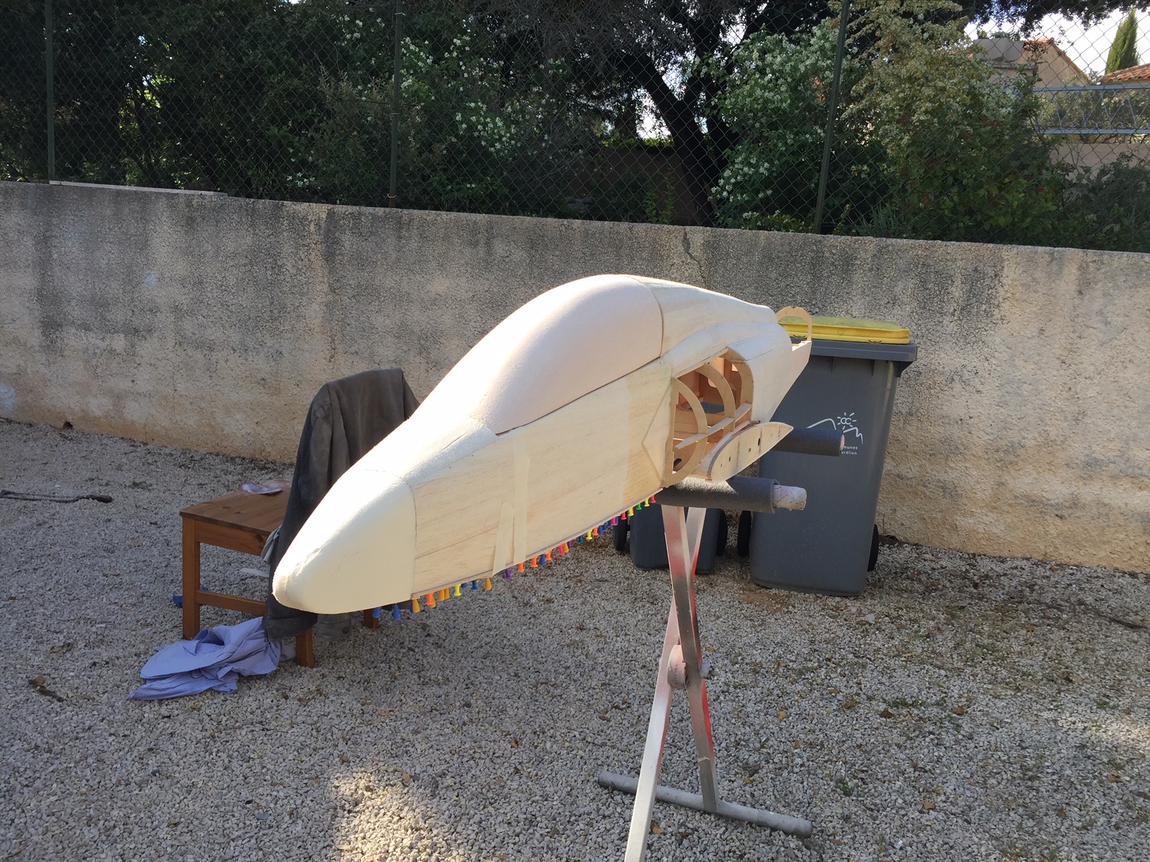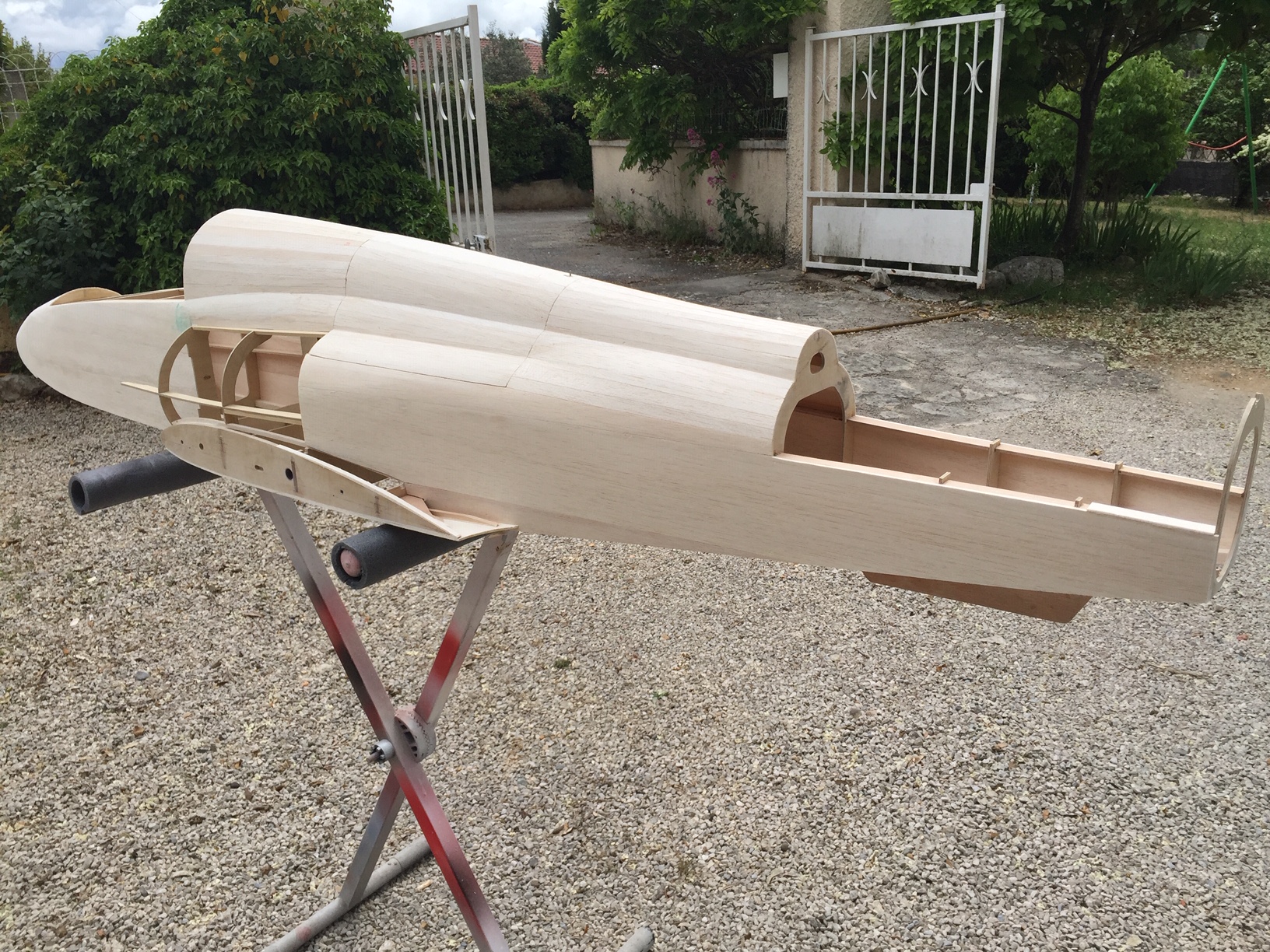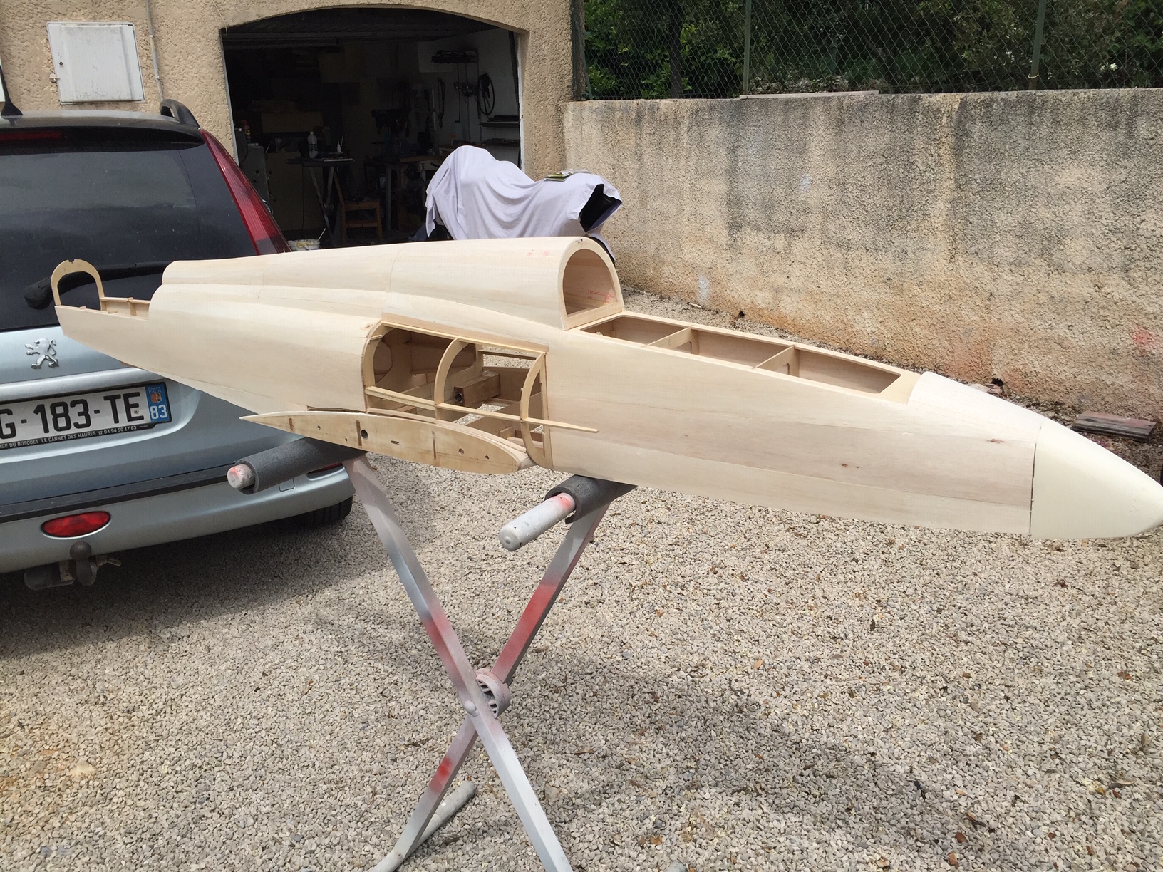 il sera replacé sur le marbre pour finir coffrage des entrees d air, stab et derive avec mise en croix avec les ailes.