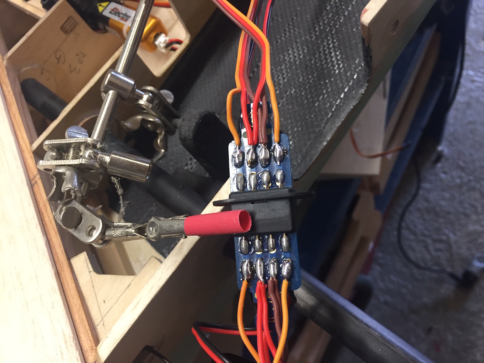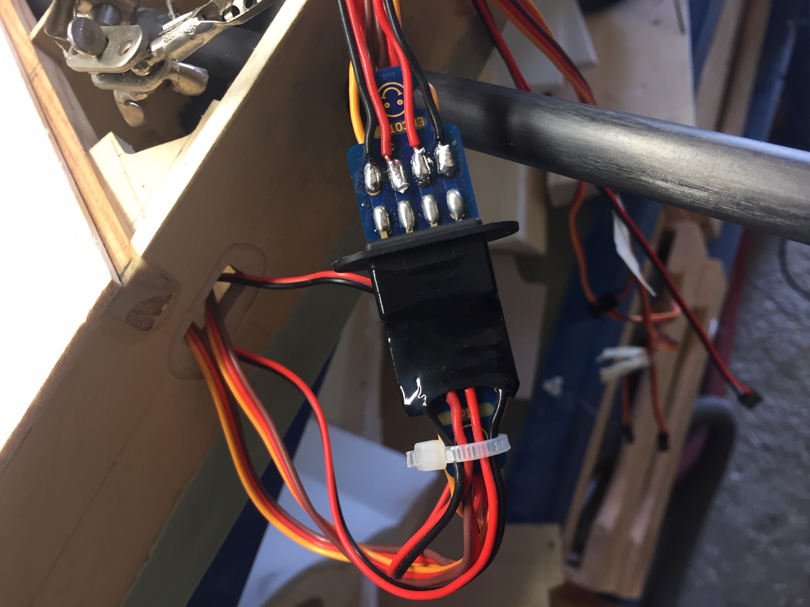Bonjour à tous, aujourd hui un peu de soudure, passage des fils, pose gaine thermo pour maintenir fil de frein le long de la jambe de train. Je vais pouvoir terminer le coffrage de l aile. Photos