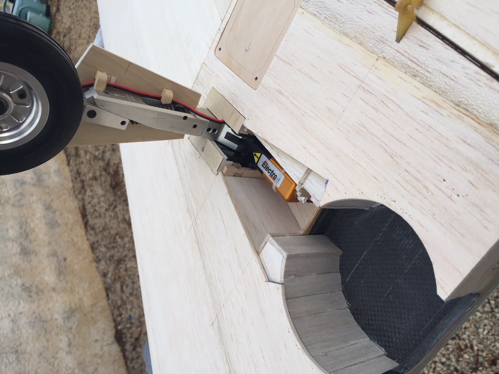 Bonjour à tous, et merci Camilodo pour tes encouragements. Je poste moins en ce moment, mais je continue de travailler dessus assidument...le truc c est que j ai eu une mauvaise nouvelle les jambes de trains que j avais commendées ne se montent pas avec les roues que j avais aussi commandées un grand merci à Adrian d electron retract qui m a prevenu et nous avons donc trouvé une combinaison qui marche , sauf que ca va etre plus long de 15mm, je vais donc etre obligé de grignoter les nervures d emplanture pour laisser passer les roues en position fermé. J ai deja fait la modif sur l avant et les trappes avant sont terminées. Reception des jambes de train milieu de semaine prochaine. En attendant je fibre le dernier bout de fuselage qui restait et demain je peserai le fuselage nu mais complet (vide sauf servos de derive, stab, trappes avant soit 5 servos) pour savoir ou j en suis question poids.