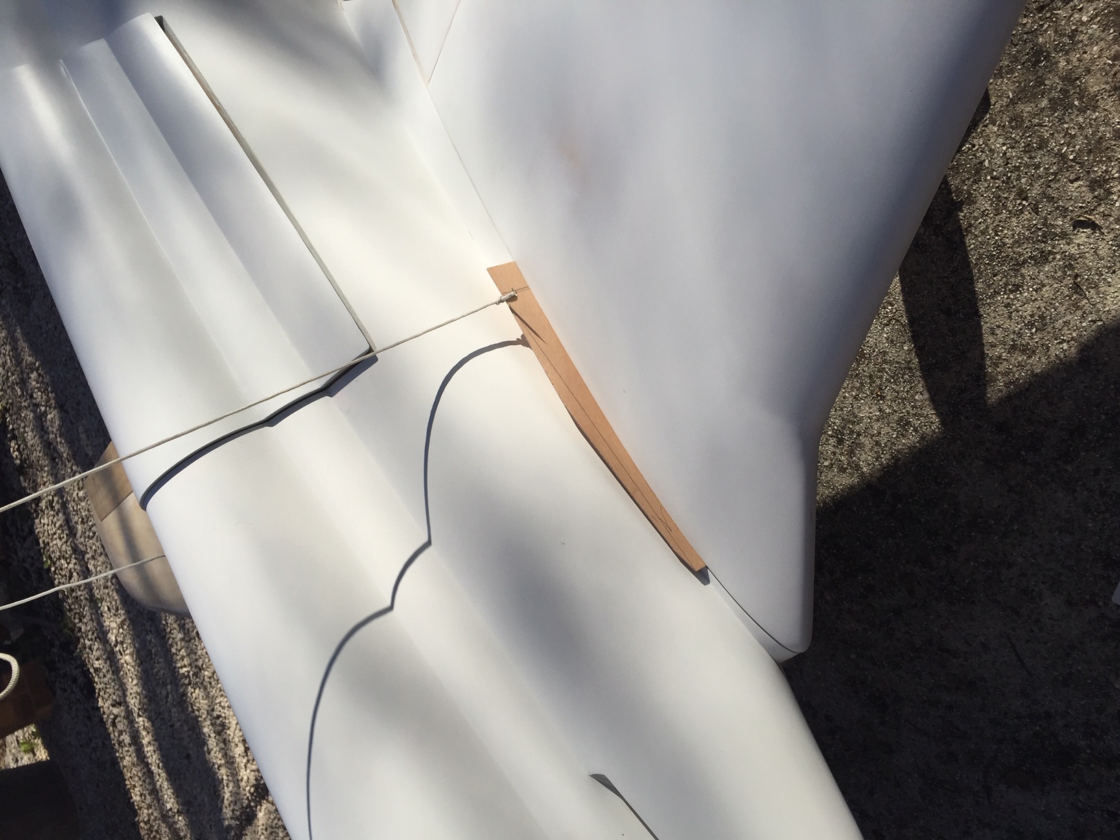 Bonjour à tous, aujourd hui montage à blanc complet pour centrage et pesée. J ai mis deux cordelettes autour des clés d aile et j ai dû rajouter 240gr pour obtenir le centrage (reservoir anti bulle plein et position du train qui donne le centrage le plus arriere c est a dire train sorti). J ai rajouté 40gr sur l aile droite (sans appret), et j ai un poids total de 11,5 kg