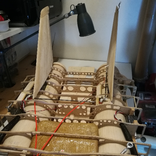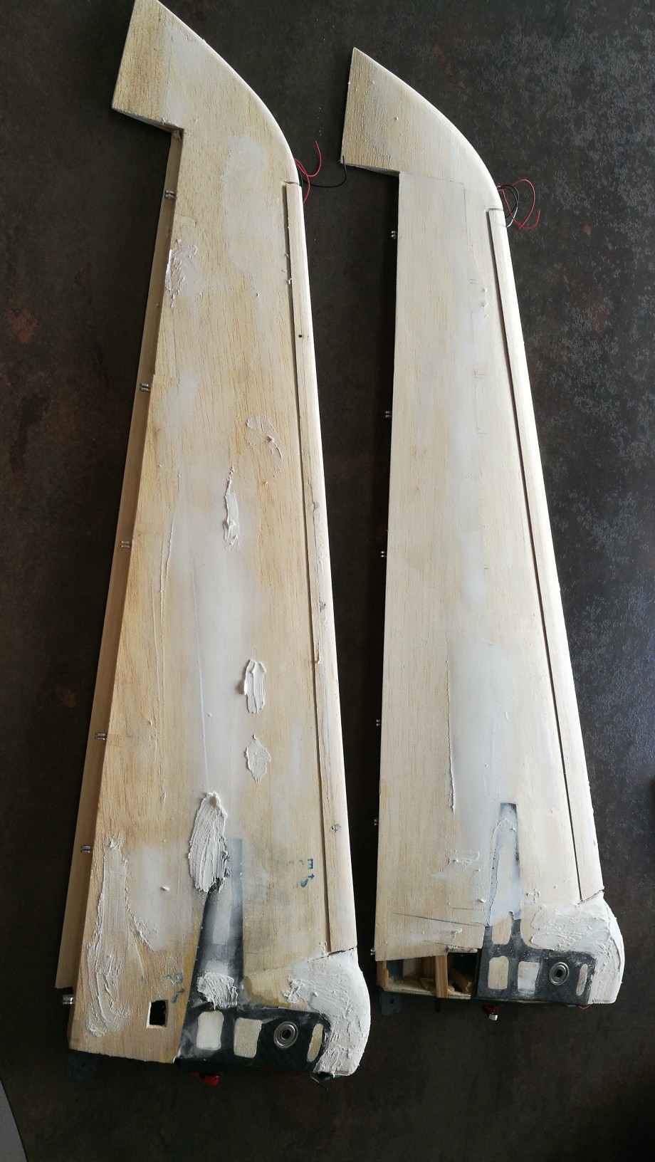 Je suis en train de finaliser les 2 stabilisateurs mobiles et le coffrage central, derrière le cockpit.