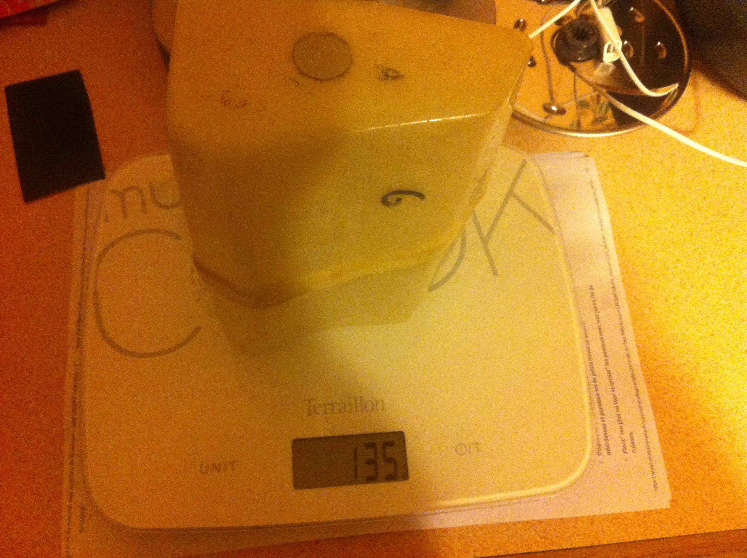J'ai divisé par 2 le poids. De quoi "compenser" l'ajout de la perche et de pilote par la suite.
