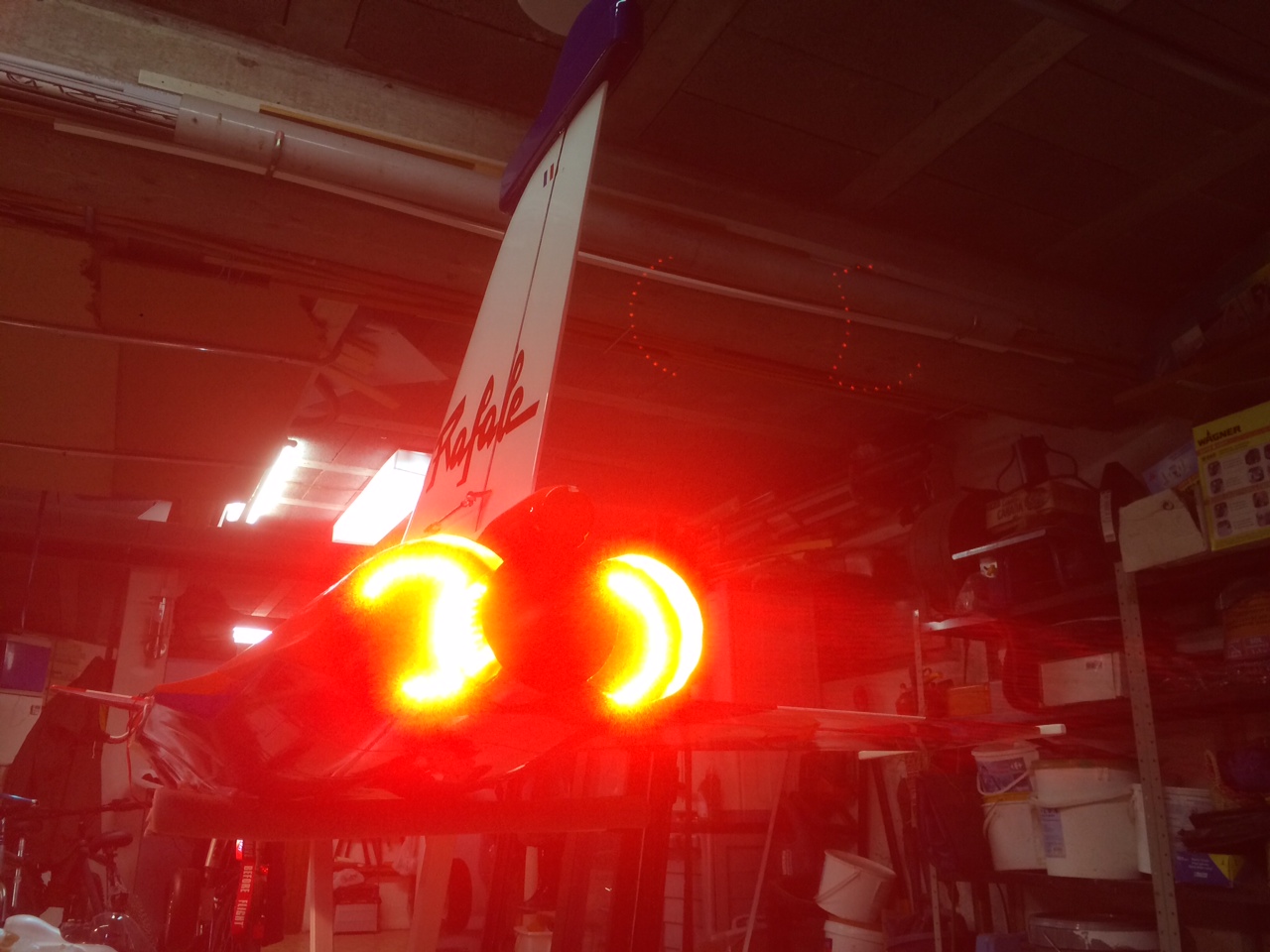 J'avais prevu un module Xicoy (pas cher) pour l'effet de scintillement. Mais suite à erreur de polarité je l'ai cramé. Je me suis donc retourné vers un sequencage par la radio. Declenchement aux alentour de 70% de course sur les gaz. Eeeet ca marche pas si mal pour pas cher (3-4$ l'ESC, 25€ de LED)