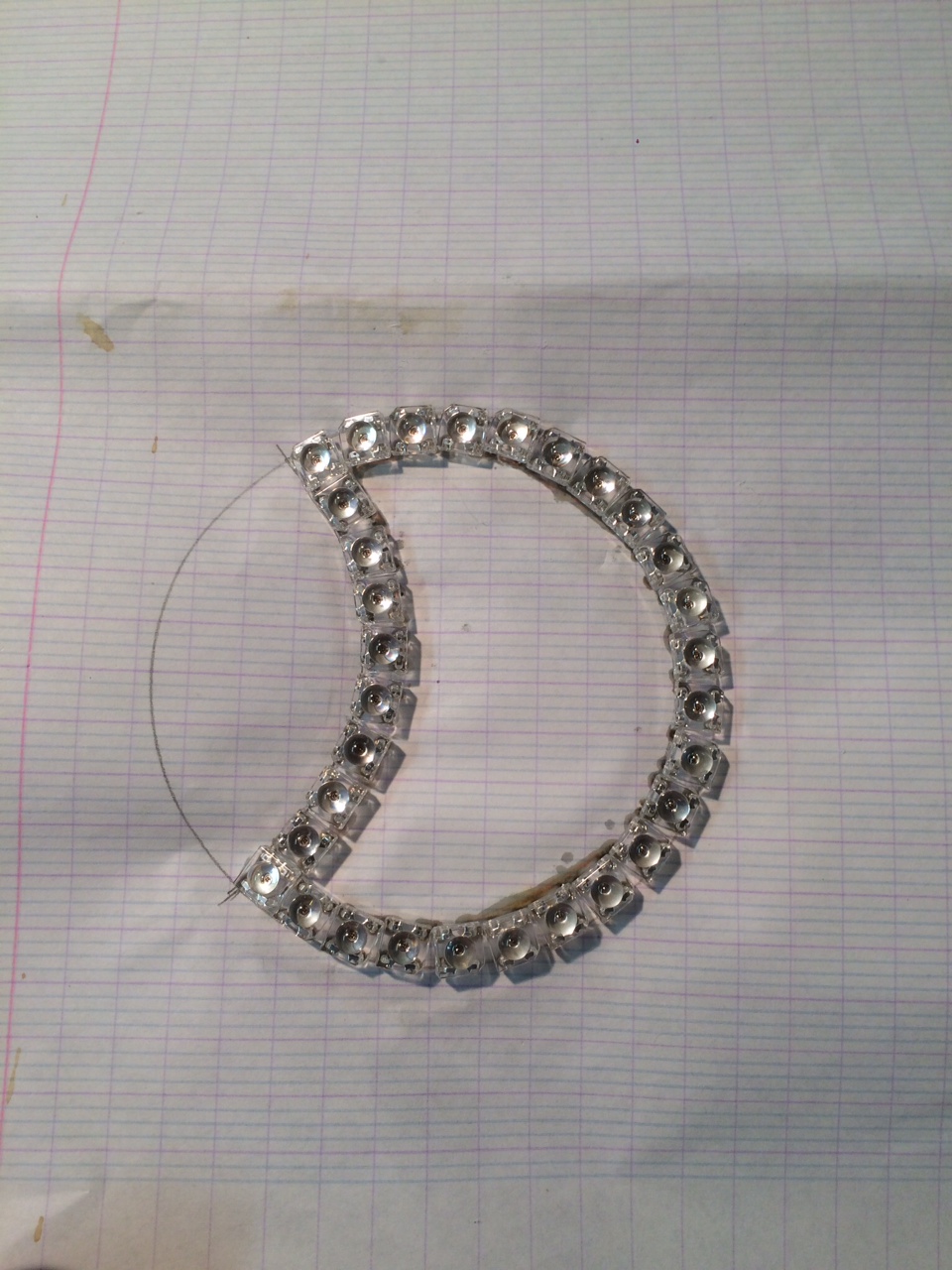 J'ai utilisé un ESC (initialement dedié pour la pompe fumigene sur le montage de Gaetan). Chaque "anneau" a ses LED en parrallele. Et ensuite mis en serie avec le deuxieme anneau. Il faudrait tout de meme que je rajoute une resistance. A terme je pense que les LED vont fumer.