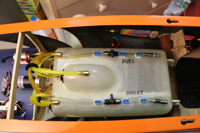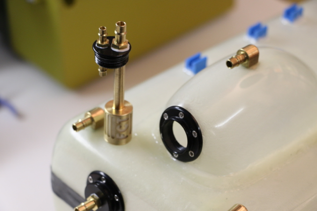 Quelques travaux cet hiver pour installer un nouveau réservoir (3,2L) avec UAT intégré et compartiment fumigène (1L). A noter le filtre démontable sur l'UAT et les sorties en 6mm (il faut utiliser du tuyau tygon XL en 6mm).