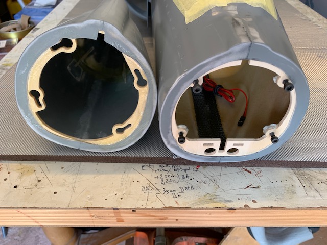 Une solution possible étant bien sûr le moteur sans extracteur complètement à l'arrière et accessible aisément par le croupion démontable, à voir en fonction de la répartition des masses lors des premières pesées à vide et du coup pourquoi pas descendre à 10kg de poussée...