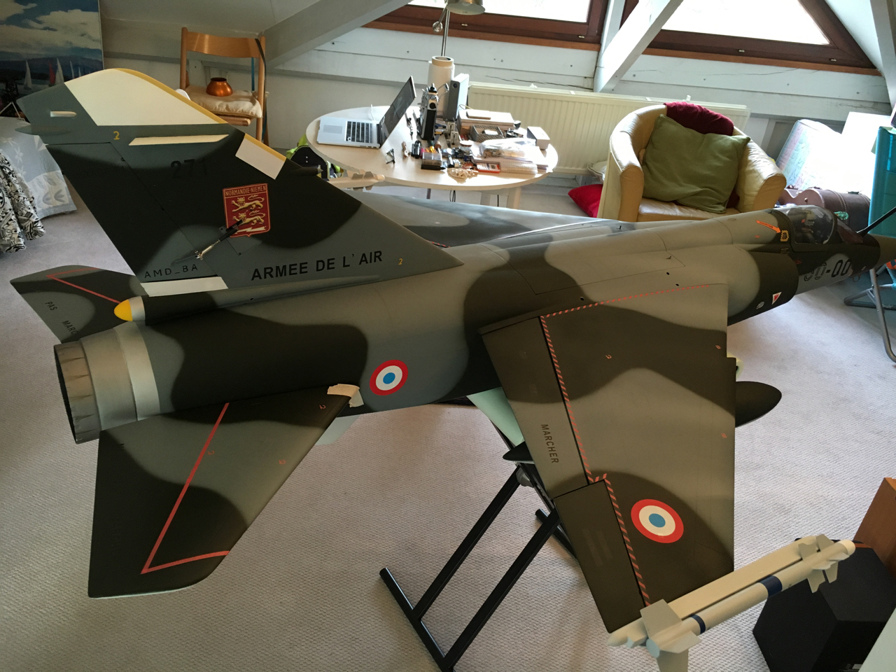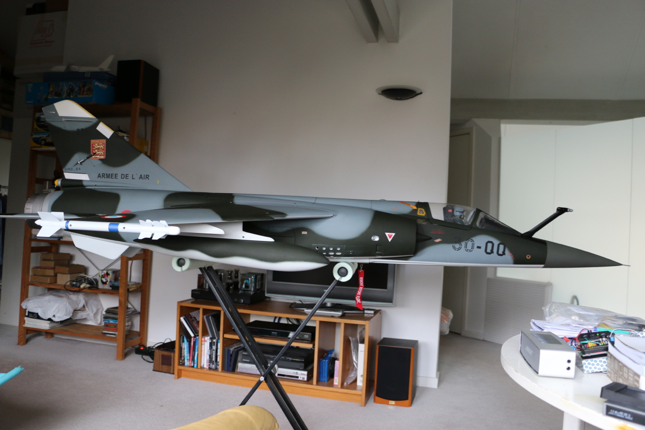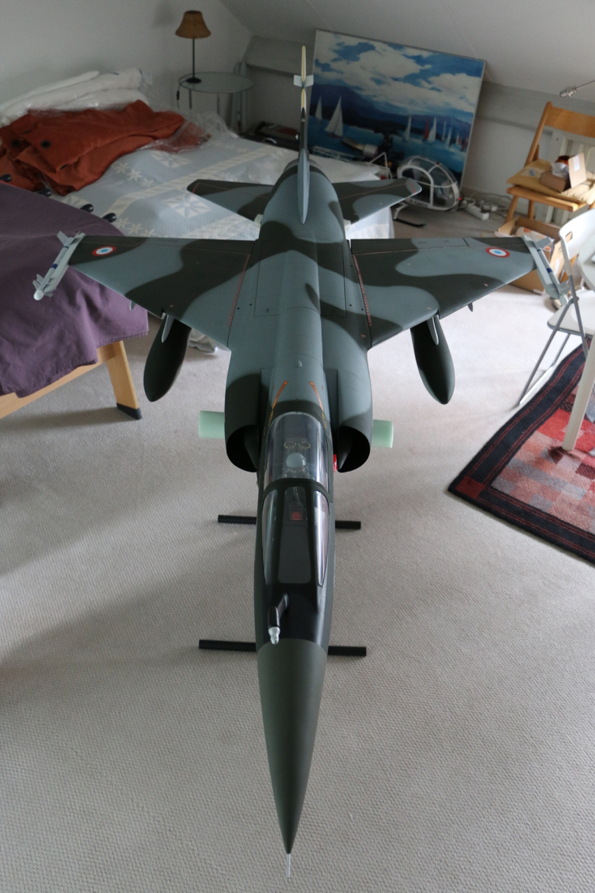 Non pas encore décidé car j'attendais de pouvoir faire les premiers tests de centrage. La turbine vient d'arriver donc j'ai fait un premier check aujourd'hui et il semblerait que je vais devoir les laisser comme ils sont à l'arrière. Mais je ne peux pas encore confirmer à 100% car je n'ai pas les jambes de train principal (en cours de modification chez un ami).