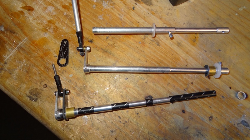 24 grammes ont été gagné en remplaçant les axes en alu pleins par du tube de flèche d'arc (Full Metal Jacket Easton). Le Pb c'est que j'ai dû faire faire des chemises en Alu très dur pour augmenter le diam. de la flèche à celui des palier et du fourreau des stab (de 9/32' Impérial à 8mm) .