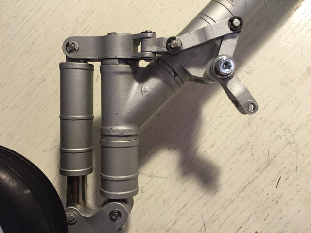 La grosse incertitude reste la qualité des matériaux utilisés (alu plutôt mou et certainement fragile), on verra à l'usage et il faudra juste faire des kiss landing... Si ça ne tient pas, il faudra reconcevoir tout l'ensemble de biellettes et utiliser les matériaux appropriés, bien dimensionnés et de qualité.