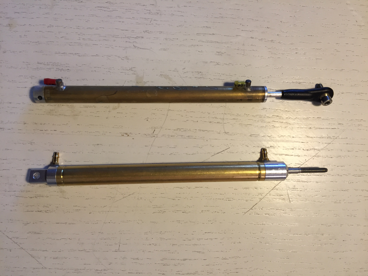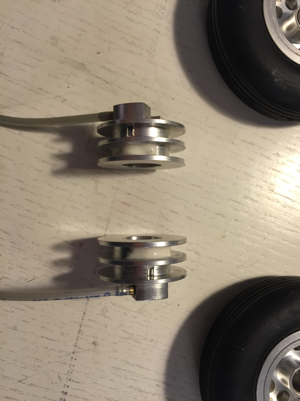 J'avais anticipé des problèmes de fuite également sur mes vérins de trains, j'ai bien fait car confirmé ce jour et donc remplacés par des Pro-Link de plus gros diamètre et de qualité. J'ai également bouché un trou sur la jante afin d'utiliser un seul joint pour le freinage, ça suffit largement et évite les plats sur les pneus.