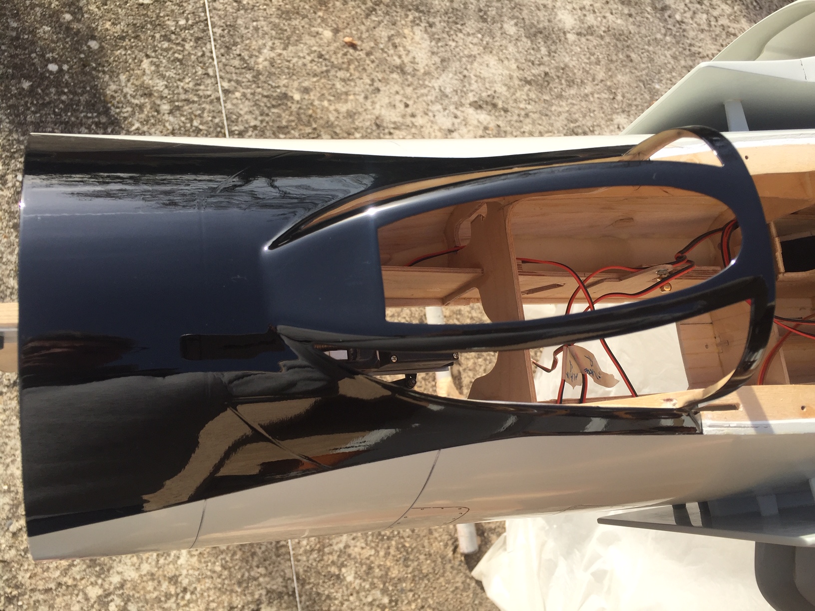 Bonjour à tous, donc aujourd'hui après quelques coups de dremels dans l armature avant (qui était restée brut de fibre), il est temps de passer a la peinture du "nez" qui sera de couleur noire. Je reviendrai sur le train avant et les trappes plus tard (attente kit unilight pour phare d atterrissage (en autre )). Photos