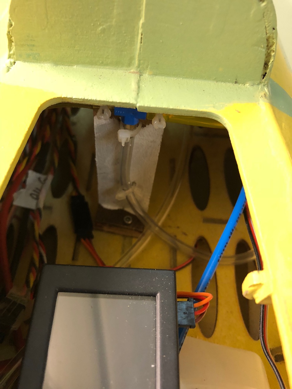 Et au départ comme montré plus haut, il devait reposer sur le réservoir de fumigène. mais pour le moment je ne l'ai pas mis, d'une part pour le poids, d'autre part pour le passage de l'air pour le réacteur....