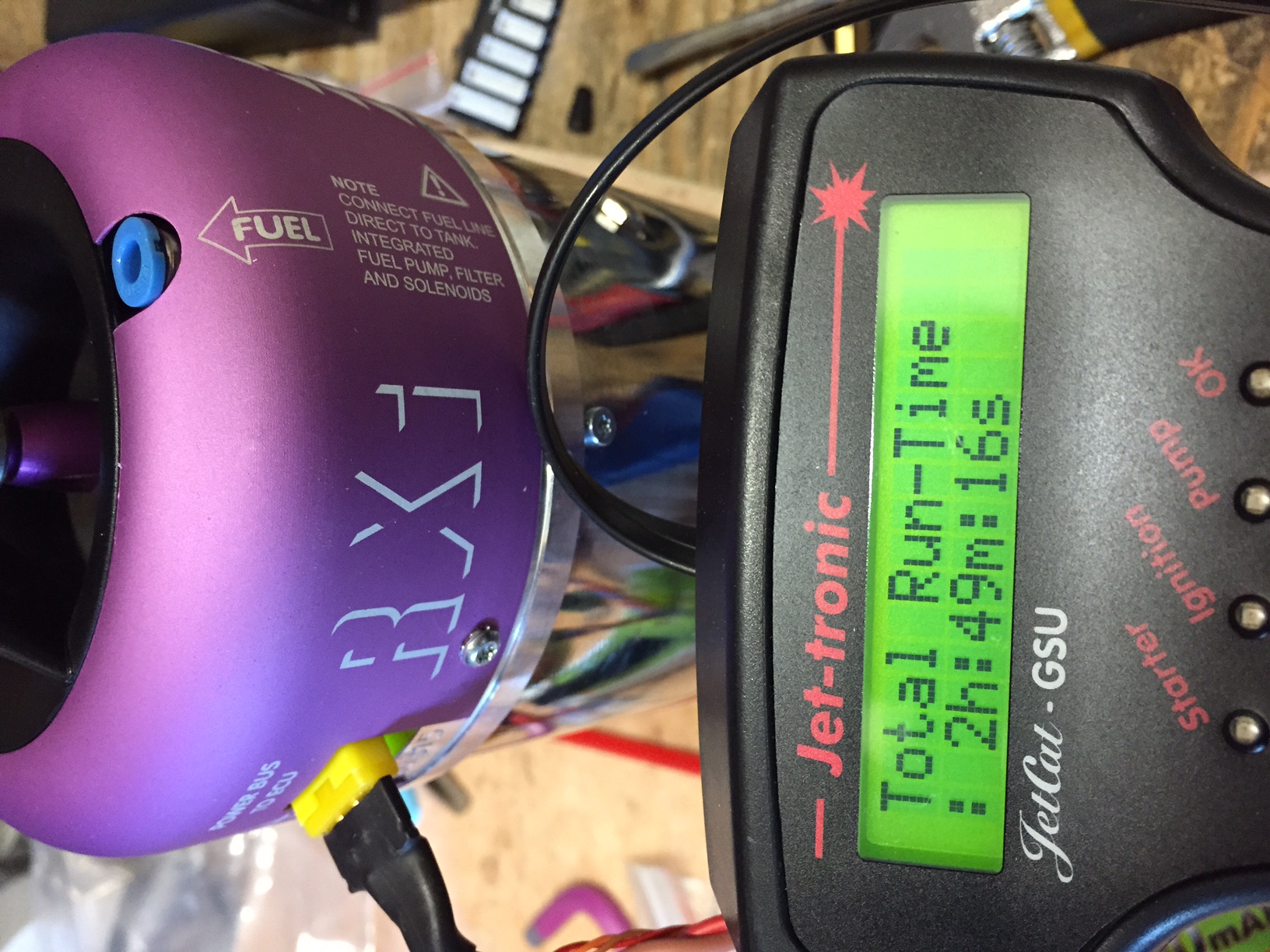 Vends P90RXI , 2heures et 50 minutes de fonctionnement , elle à vécu un décollage raté mais à fait un tour en SAV chez JetCat et fonctionne à merveille depuis .