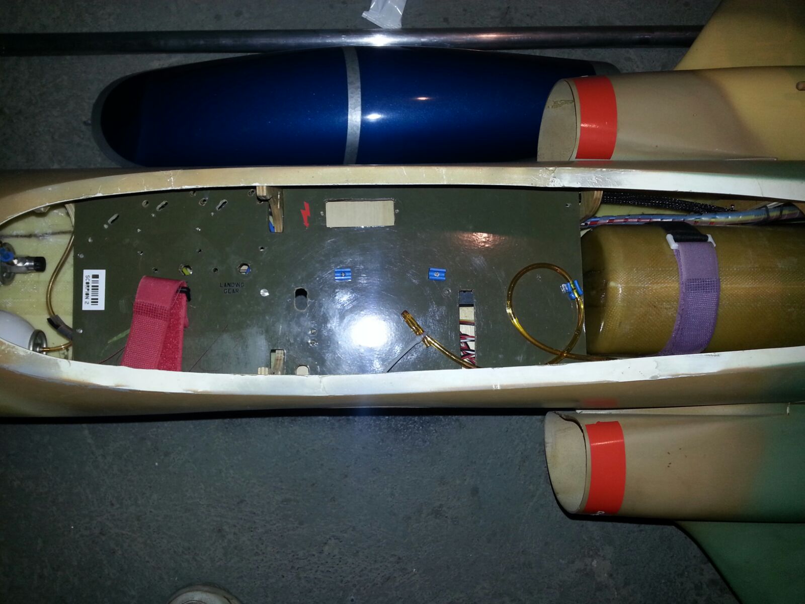 Suite nouveau projet cellule scorpion complète fuselage-ailes-dérives-stabs clé d'ailes avec tous ses servos (9), ses trains complets avec bonbonnes d'air (sans les électrovannes)- réservoir kevlar, UAT installés. donne avec toutes les housses de protection. Pour turbine 10 à 14 kilos.