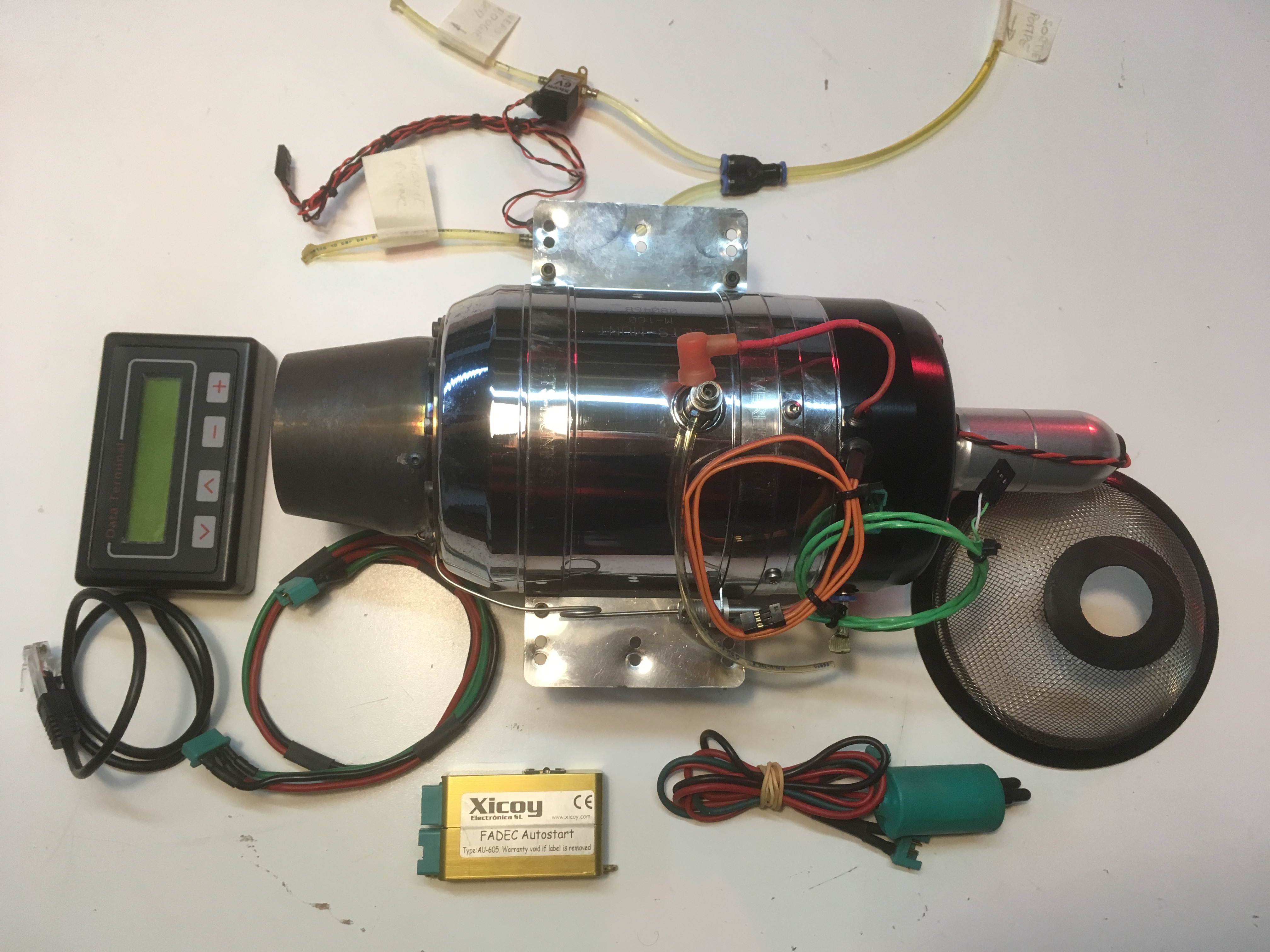 MERLIN 160, de retour de révision/réparation jetsmunt (jamais subie de crash). Total runtime depuis neuf 259 min. Achetée neuve chez Christen diffusion fin 2009. Fonctionnement au banc inférieur à 5 min depuis retour pour vérifier le fonctionnement. Démarrage gaz. Elle était initialement kérostart mais bougie HS depuis retour révision. Possibilité de la repasser kérostart en achetant une bougie JETCAT (comme la bougie d'origine montée sur ma turbine par jetsmunt qui était une JETCAT), disponible chez Christen.