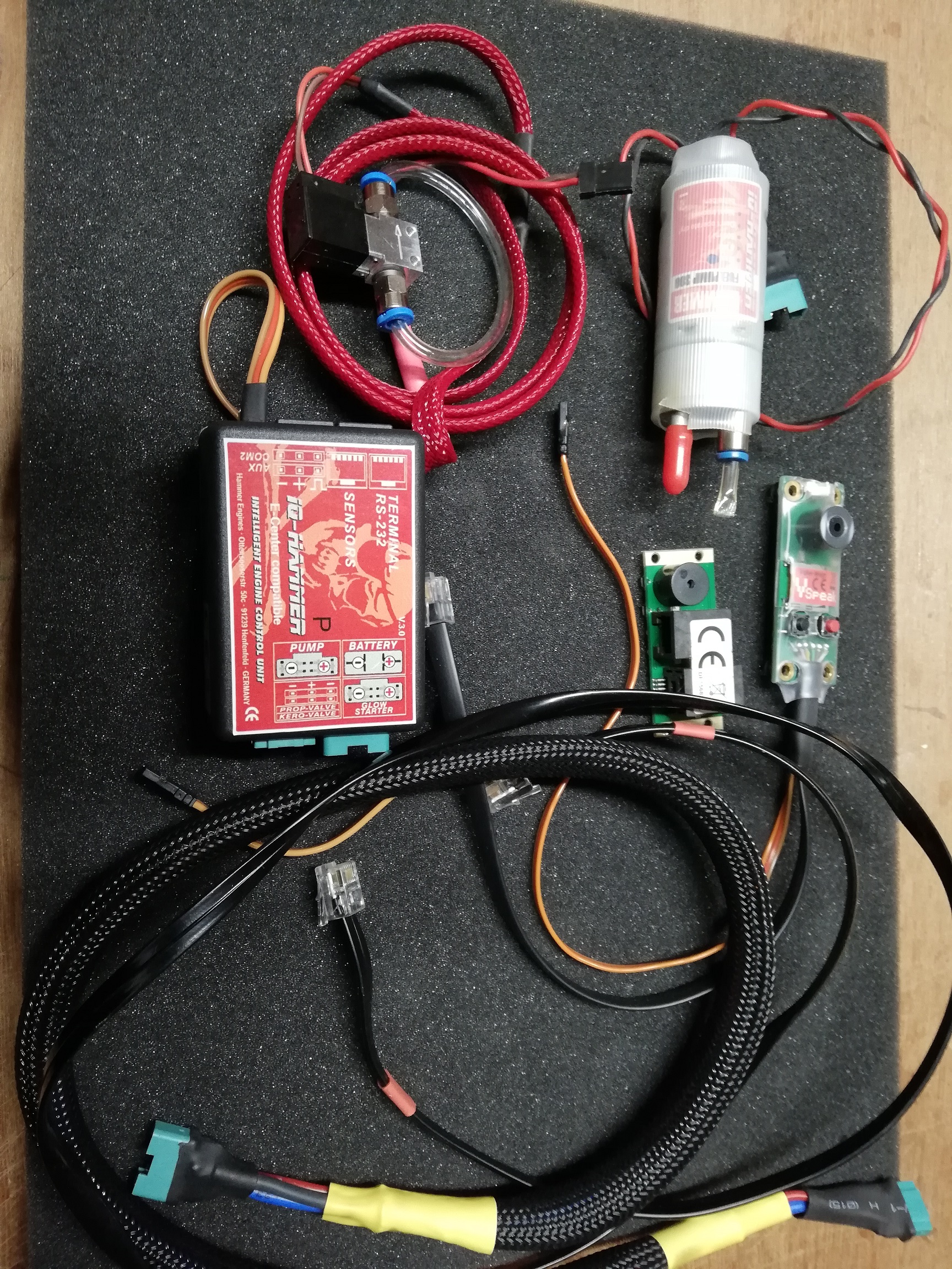 - l'ECU + électrovanne + Pompe + platine de connexion GSU + systeme de telemetrie (Jeti/Futaba/HOTT/MPX) + différent cables
