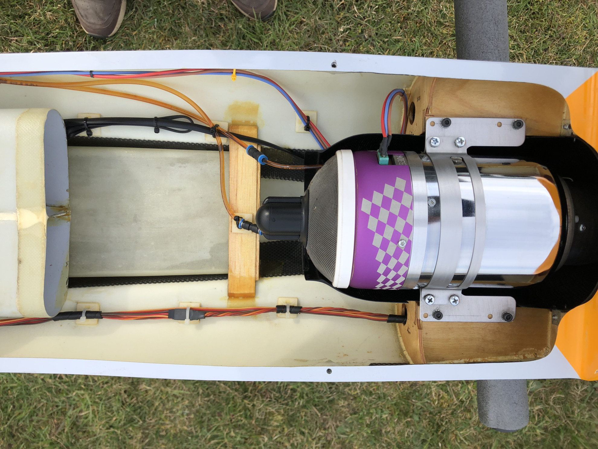2 réservoirs fibre, fuselage (2 litres) + aile (1,4 litres)