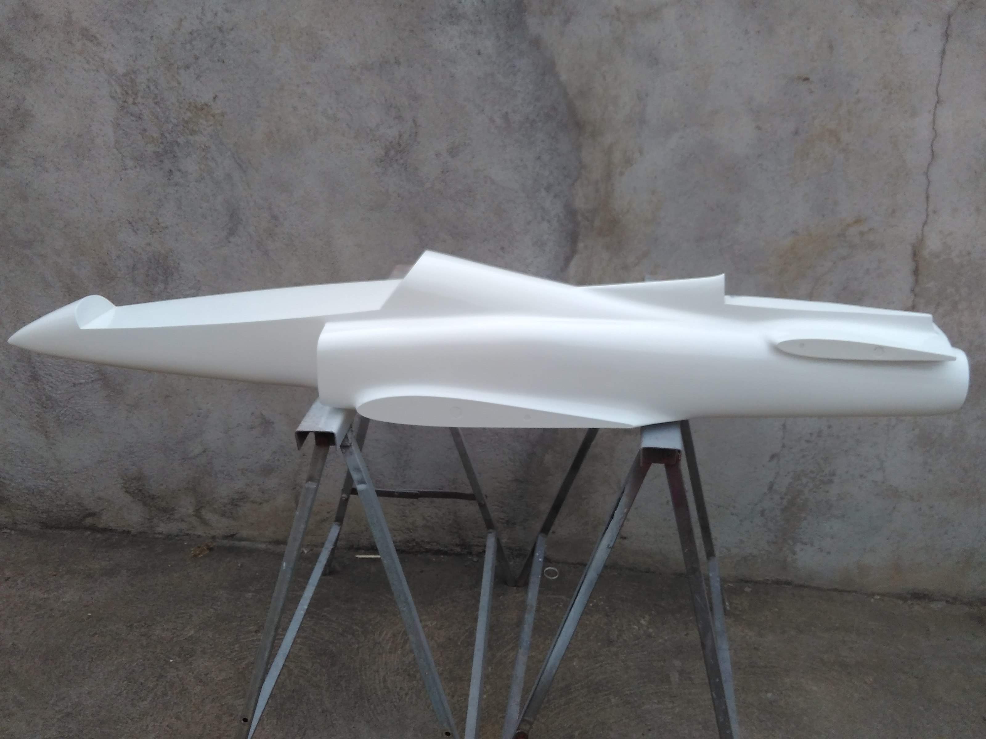 je viens de démouler le premier fuselage peint dans le moule poids:700g mais il manque les couples.Je suis en train de les dessiner pour découpe cnc.