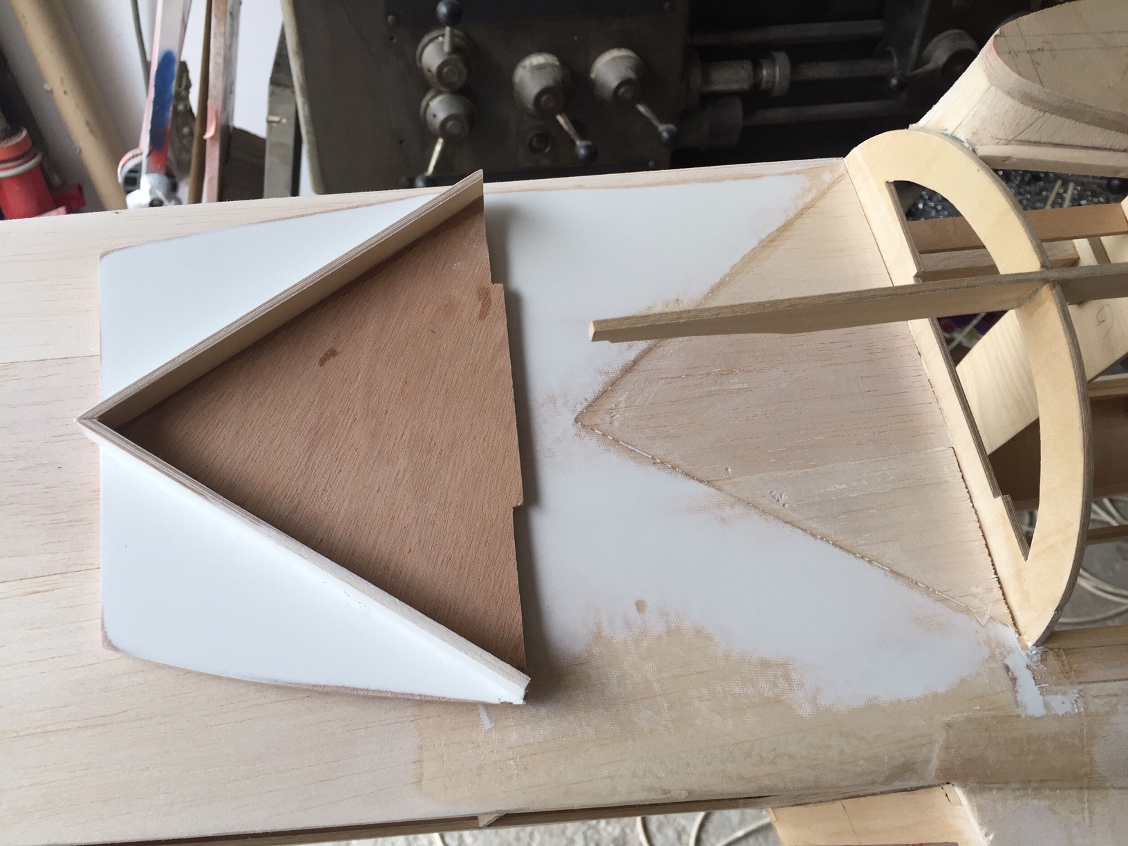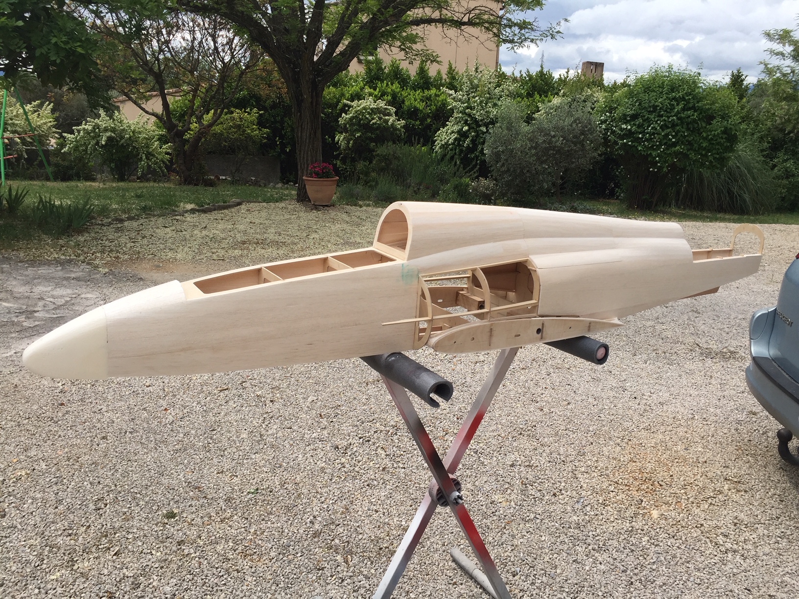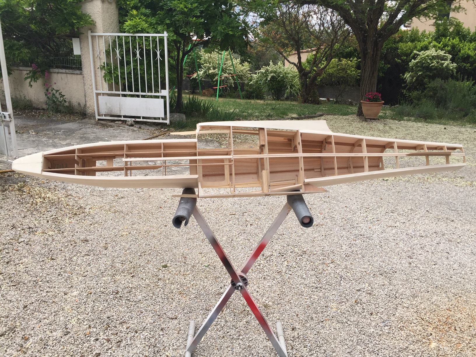 il sera replacé sur le marbre pour finir coffrage des entrees d air, stab et derive avec mise en croix avec les ailes.