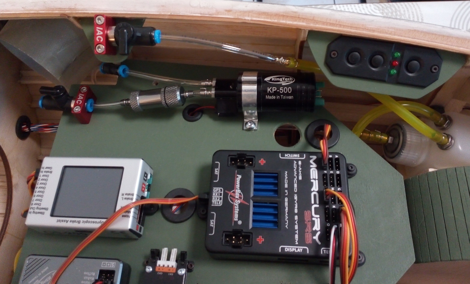 Mon seul soucis vient du freinage : le module GS200 est sensé équilibrer le freinage pour garder un axe de roulage. dans mon cas il embarque à gauche de façon systématique et je suis obligé de relâcher les freins pour rester sur la piste. J'ai bien essayé de consulter le manuel Electron retracts mais n'ai rien trouvé. J'ai peut-être un problème de parallélisme des roues : je vérifierai cela demain mais cela n'explique pas tout. Si quelqu'un a des idées sur le sujet, je suis preneur car notre terrain est court et l'usage des freins indispensable.