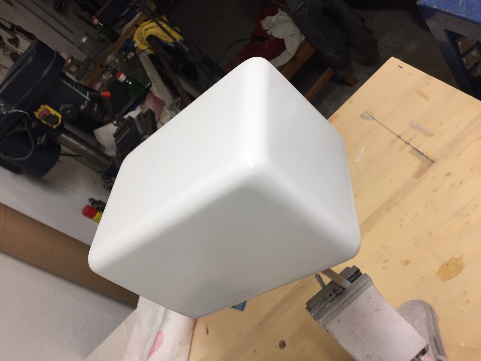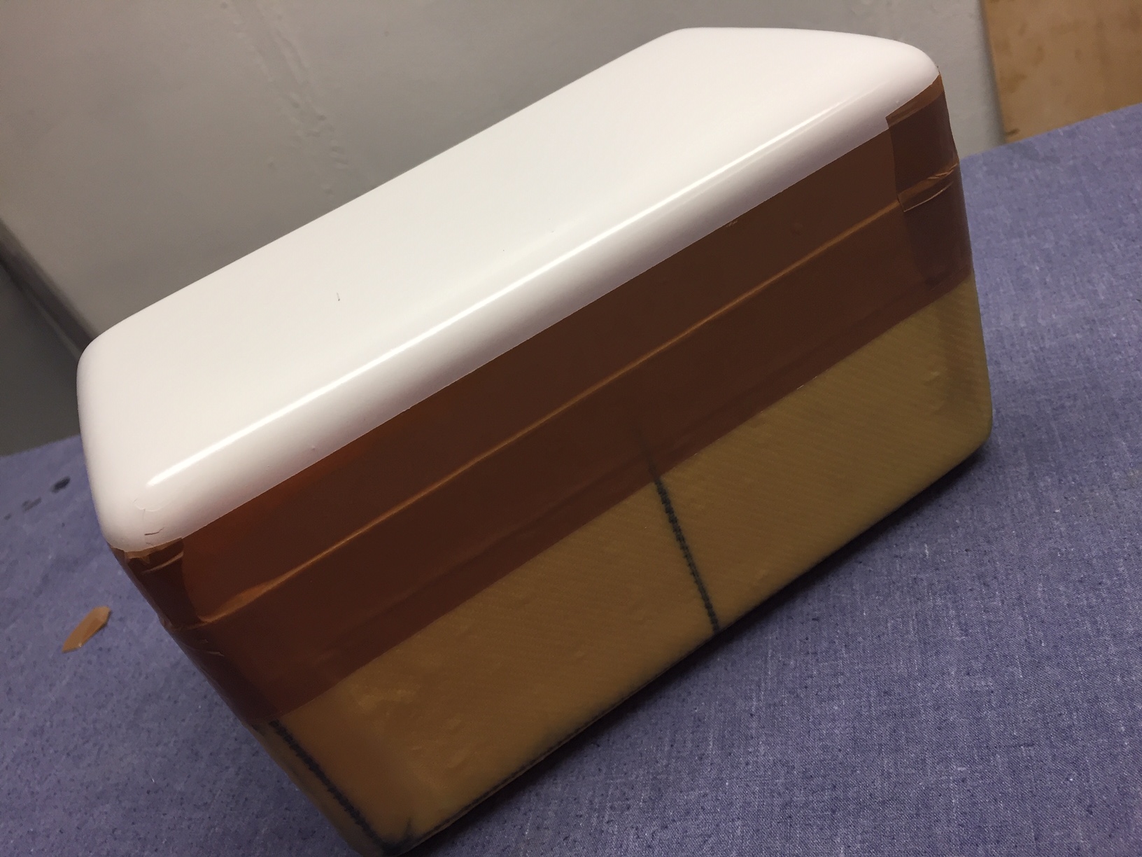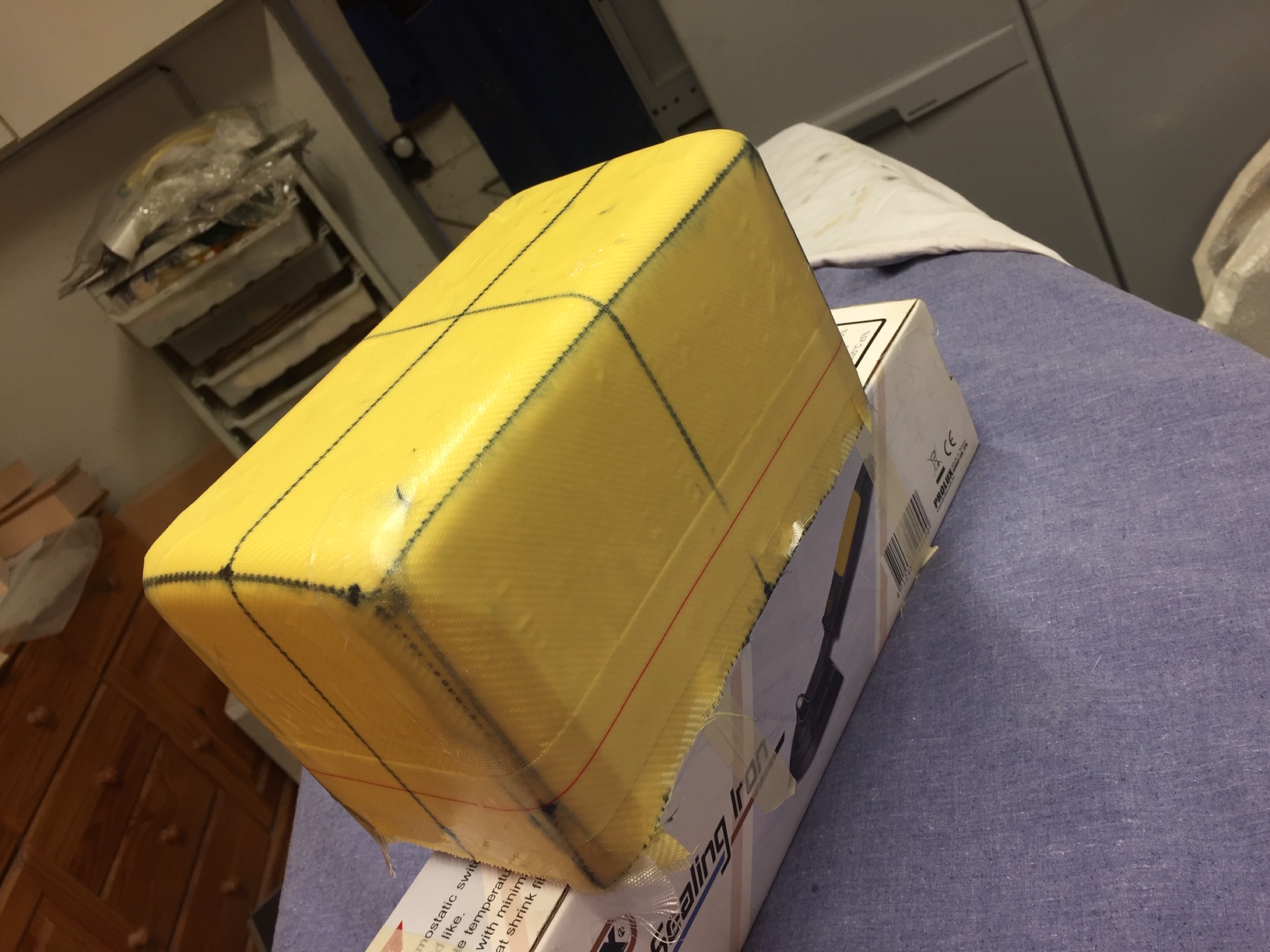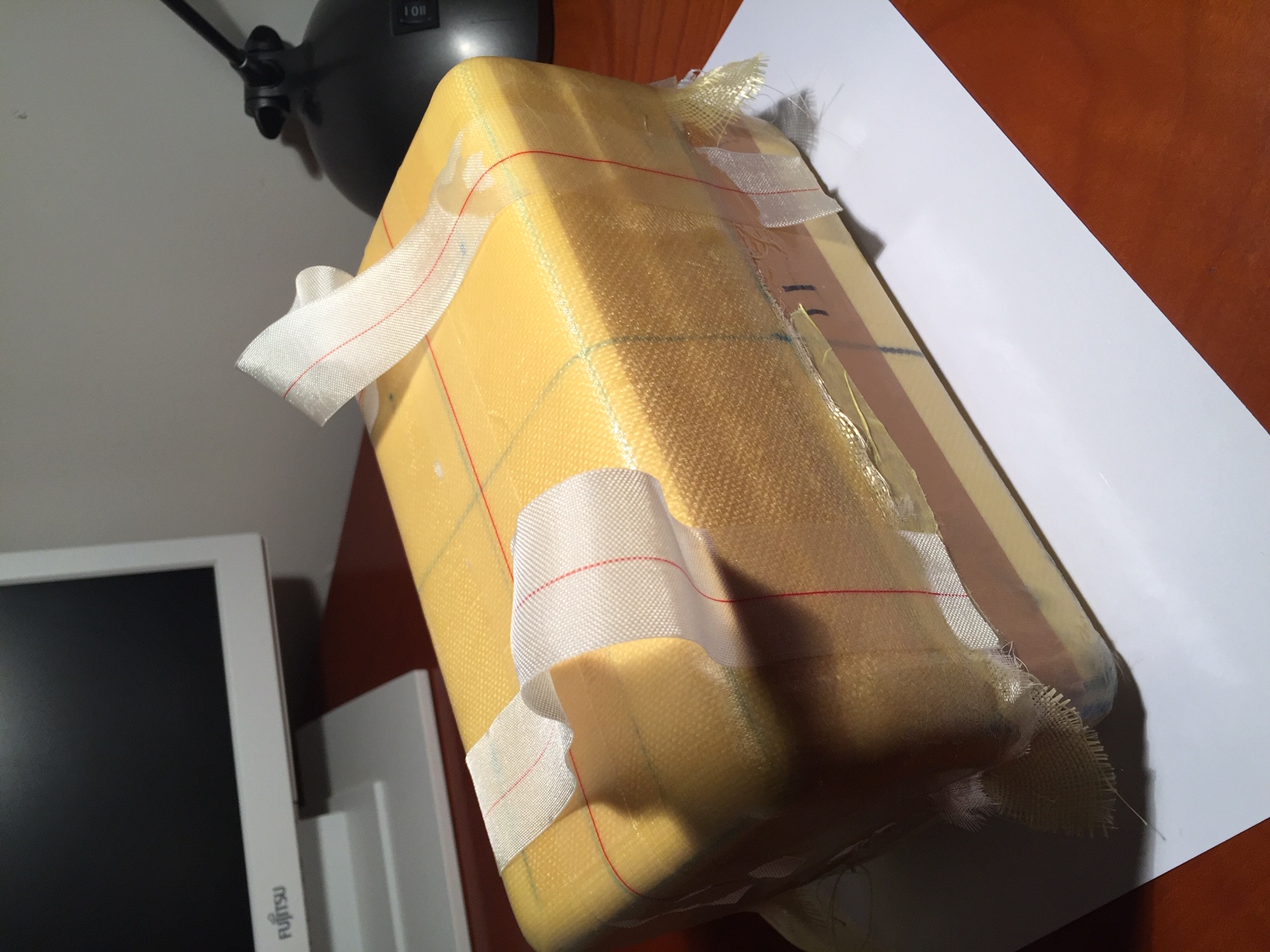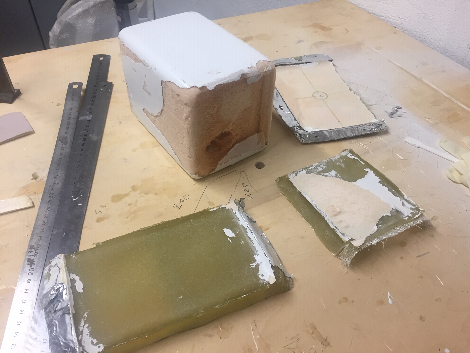 Donc je vais refaire un master toujours en mousse (polystyrene), mais que je vais fibrer avec du 150gr, en effet le master subit des agressions mecanique (demoulage) et chimique (reaction exothermique de la resine polyester).J avais minimisé ces contraintes en fibrant avec du 25gr (beaucoup trop fragile).