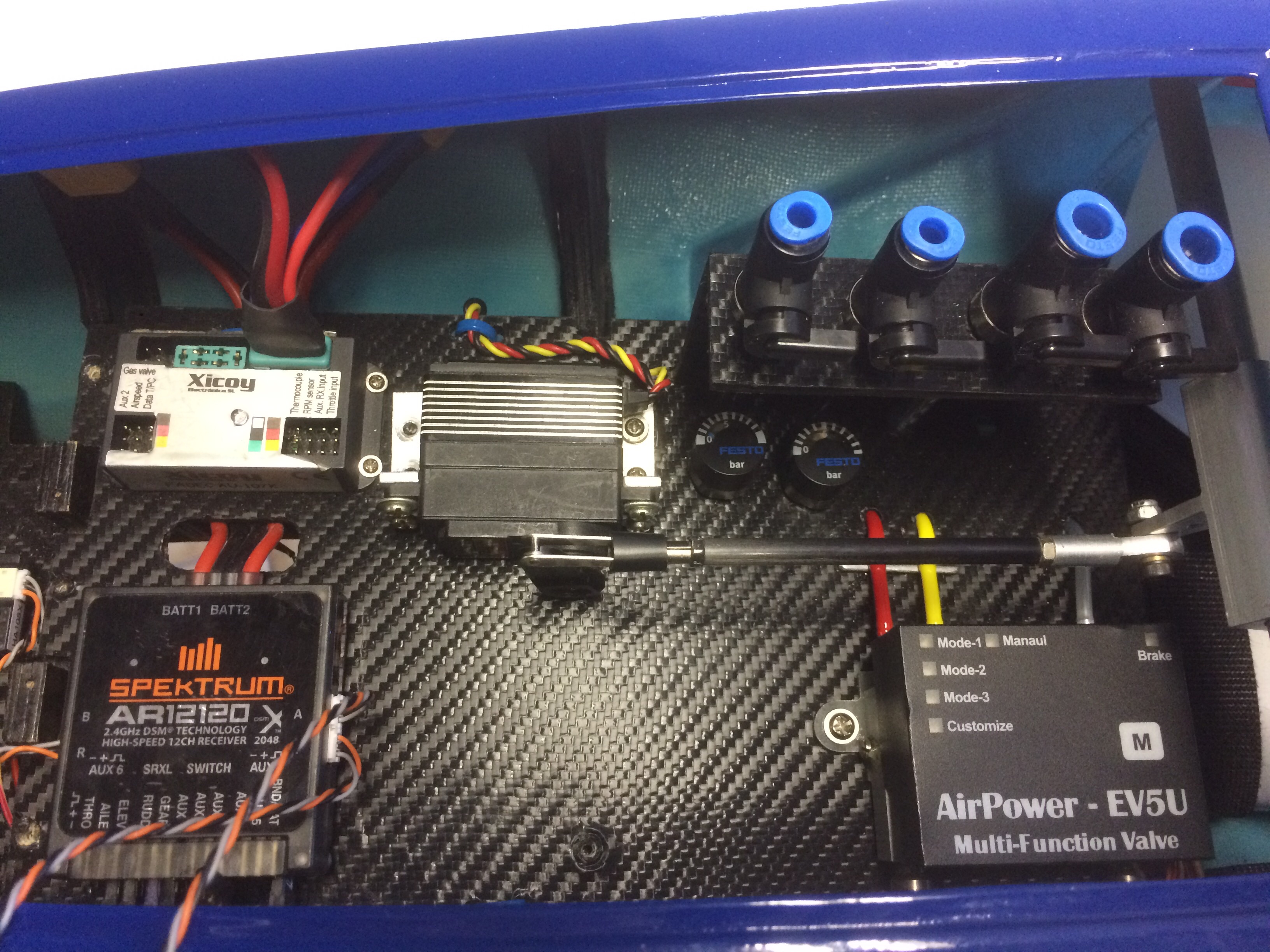Le circuit pneumatique fonctionne (pas de fuites), le train rentre/sort et se bloque bien à chaque fois. Juste le petit détail de synchronisme. Si vous savez pourquoi!?