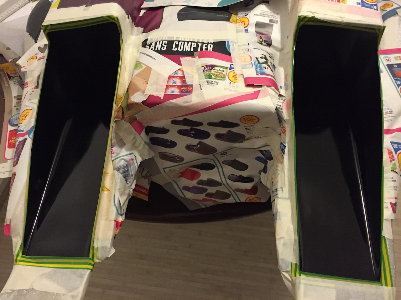 c'est reparti pour masquage,ponçage,peinturage entrées d'air et et sortie arrière du fuselage.