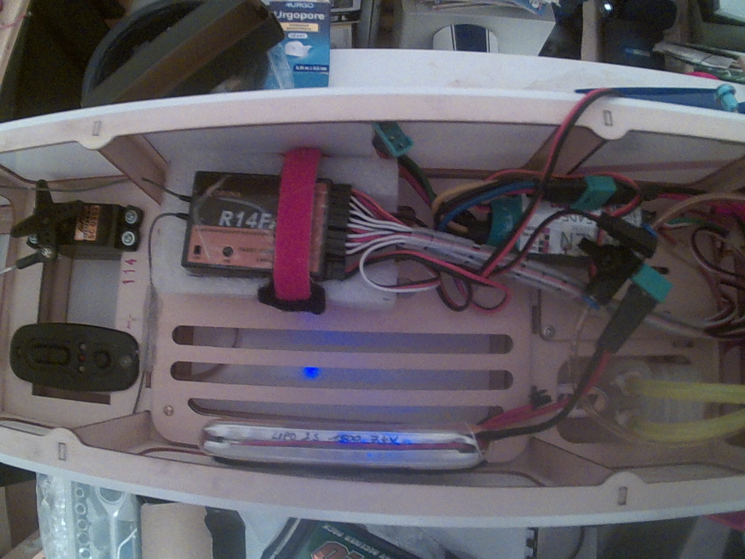 J'ai toutefois dû rajouter environ 80grs de plomb sur le couple avant au niveau de la roulette pour avoir un CG légèrement piqueur.