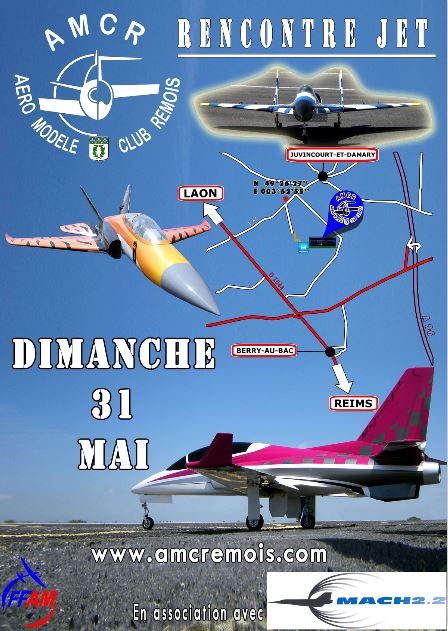L'AMCRémois et Mach2.2 organise sa 5ème rencontre amicale de jets le 31 mai 2015 sur son terrain situé sur la commune de Juvincourt-Damery (02 Aisne).