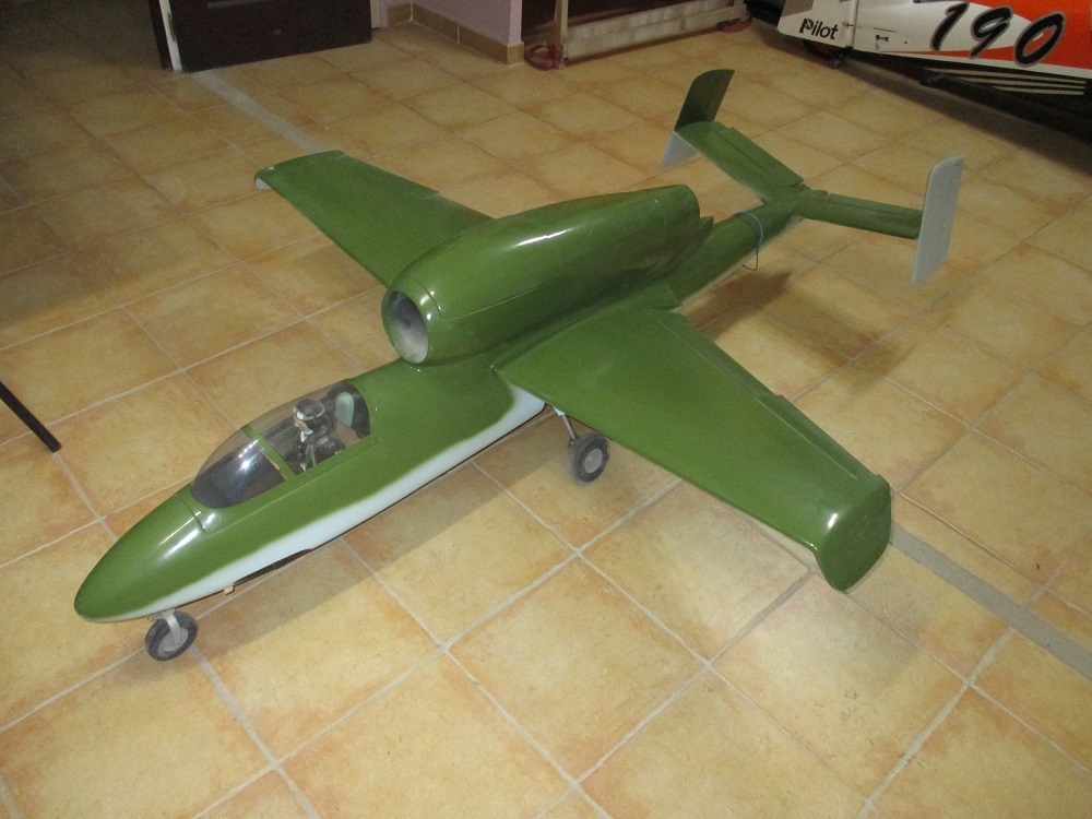 vends Heinkel 162 origine century jet , lg 2m env 1.5m , pour turbine 5 à 6 kg , jamais volé ; 2 petits chocs dus à un déménagement ; modèle en une pièce , ailes non démontables : break impératif !! ; vide d'équipements mais avec ses trains