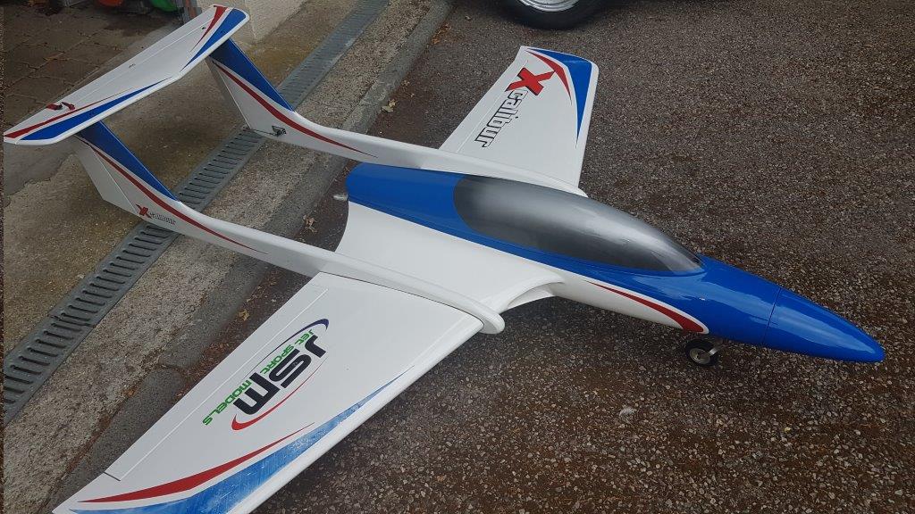 a vendre: baisse de prix:1500€ Xcalibur déco sport complet avec réservoir fibre, 9 servos 2 MKS HV737 à la dérive, 1 MKS HV727 à la prof, 4 hyperion DH20 et 2 DH13(aucun jeu), 3 accus 2200mah, inter double alim magnétique jeti, télémétrie si radio jeti, et turbine wren80 4h10 de fonctionnement. je peux envoyer d'autres photos par MP. (la différence de couleur sur l'aile droite c'est le recouvrement plastique transparent de la déco bleu qui est parti c'est tout).