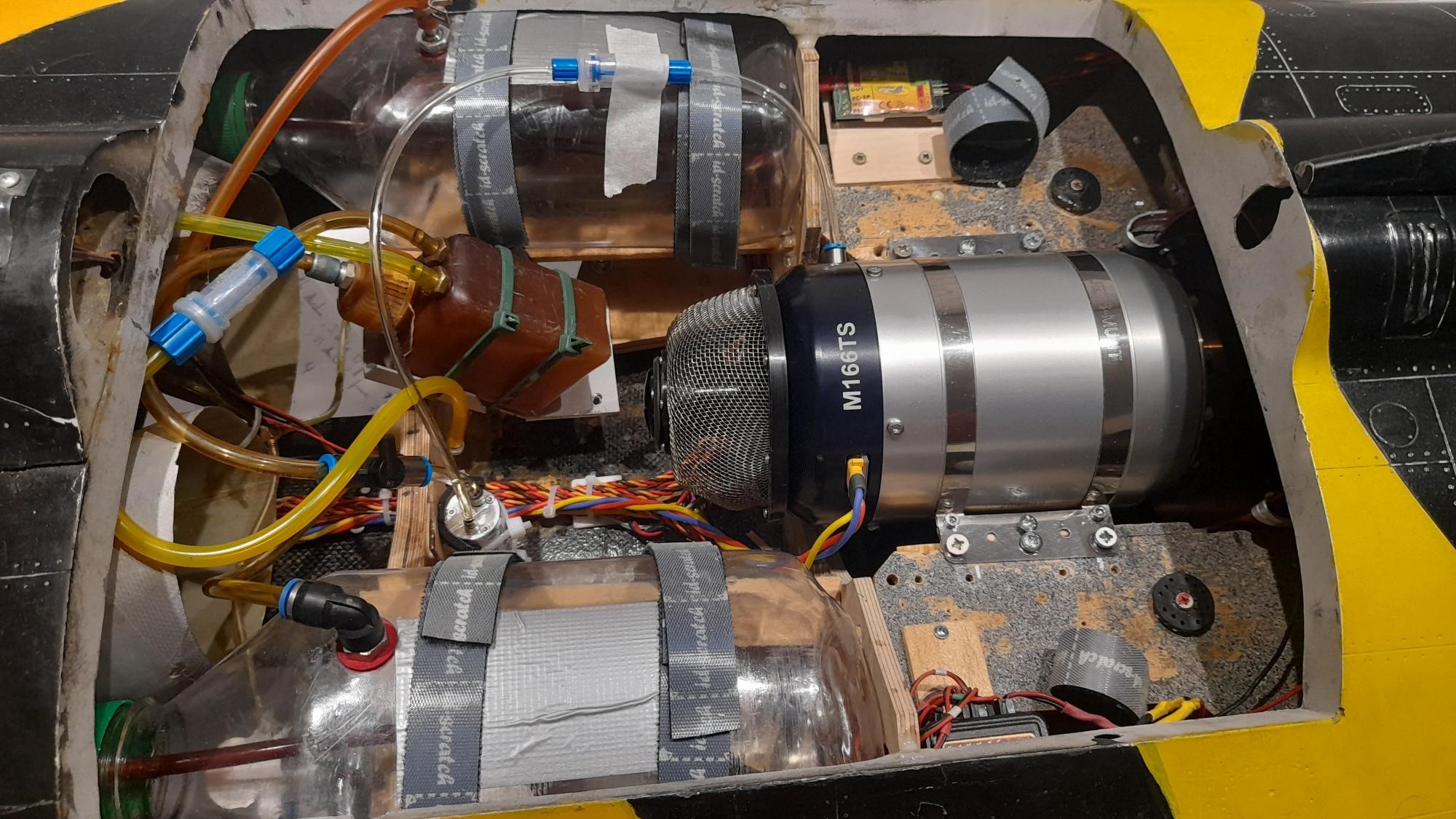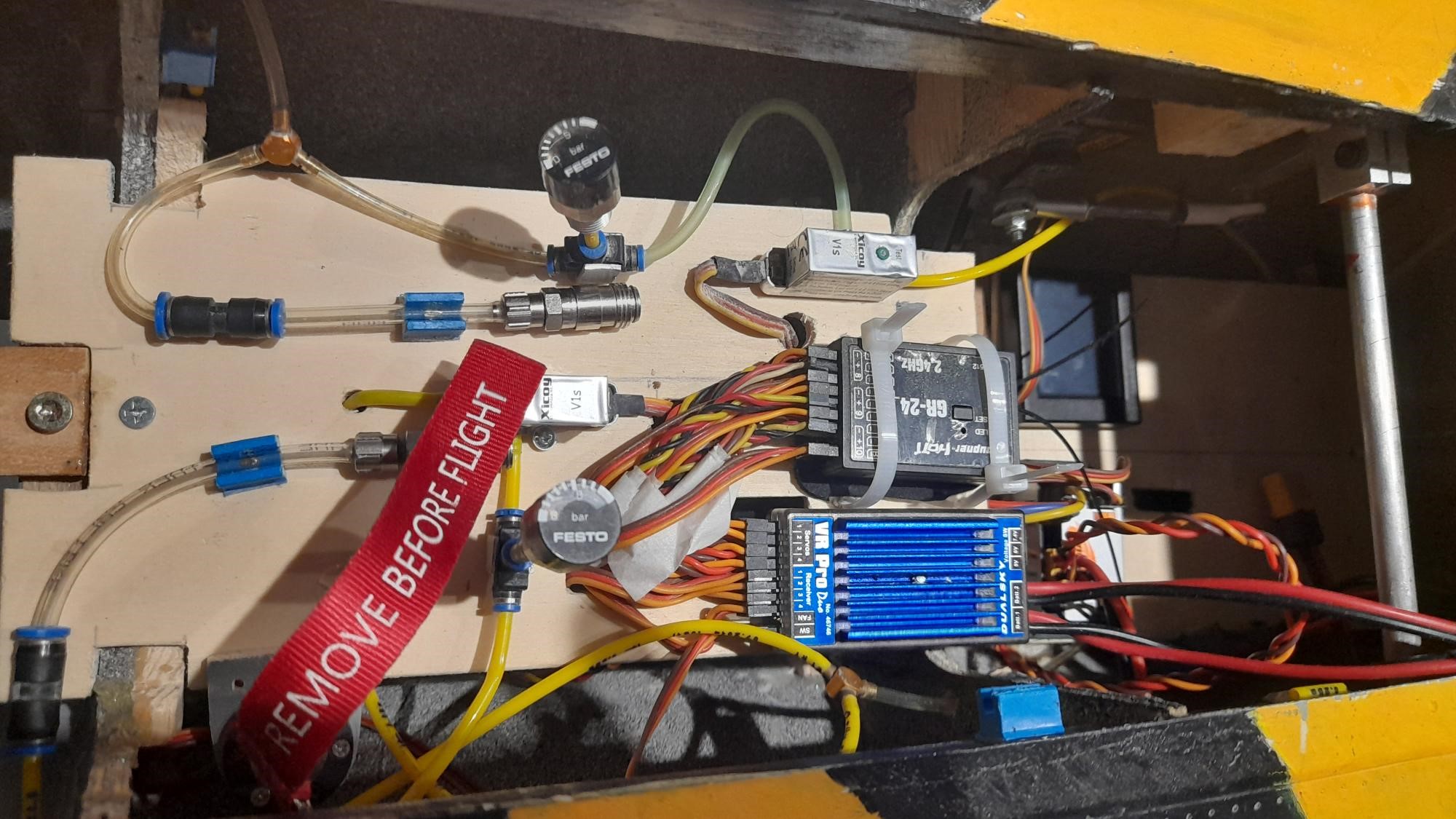 servos numériques hitec et grauner ,train d'atterrissage pneumatique avec vannes xicoy et système d'ouverture d'urgence.
