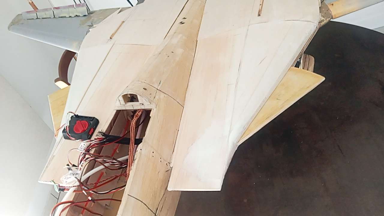 Hello a vous, Pratiquement prêt à faire un vol test, mais j'ai avancé mes turbines de 10 cm d'où commande de 2 nouvelles tuyères. Satisfait d'avoir le es 10 trappes géré par 1 servo et tringleries, les trains arrières ne sont pas maquette, a voir déjà si vole bien. Pas comment mettre les photos( dep...