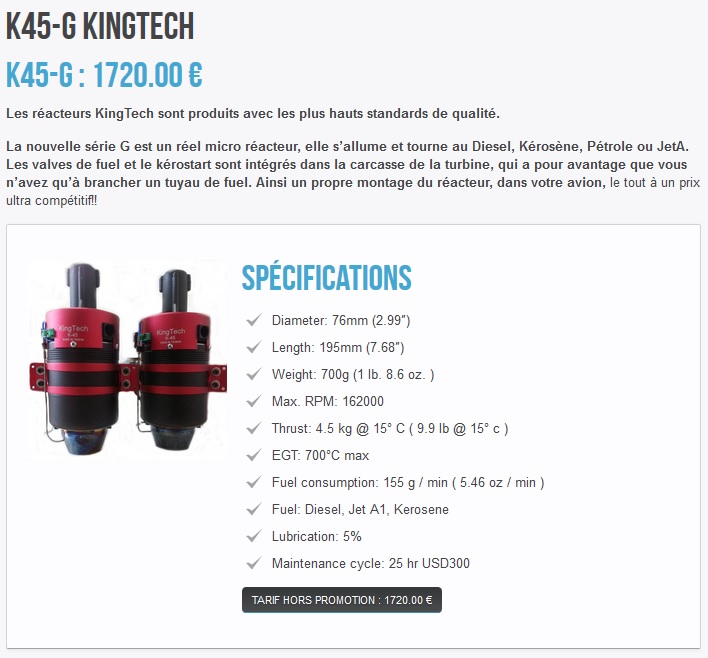 où trouver les caractéristiques des turbines kingtech ??? ( poids de la turbine et autres accessoires )