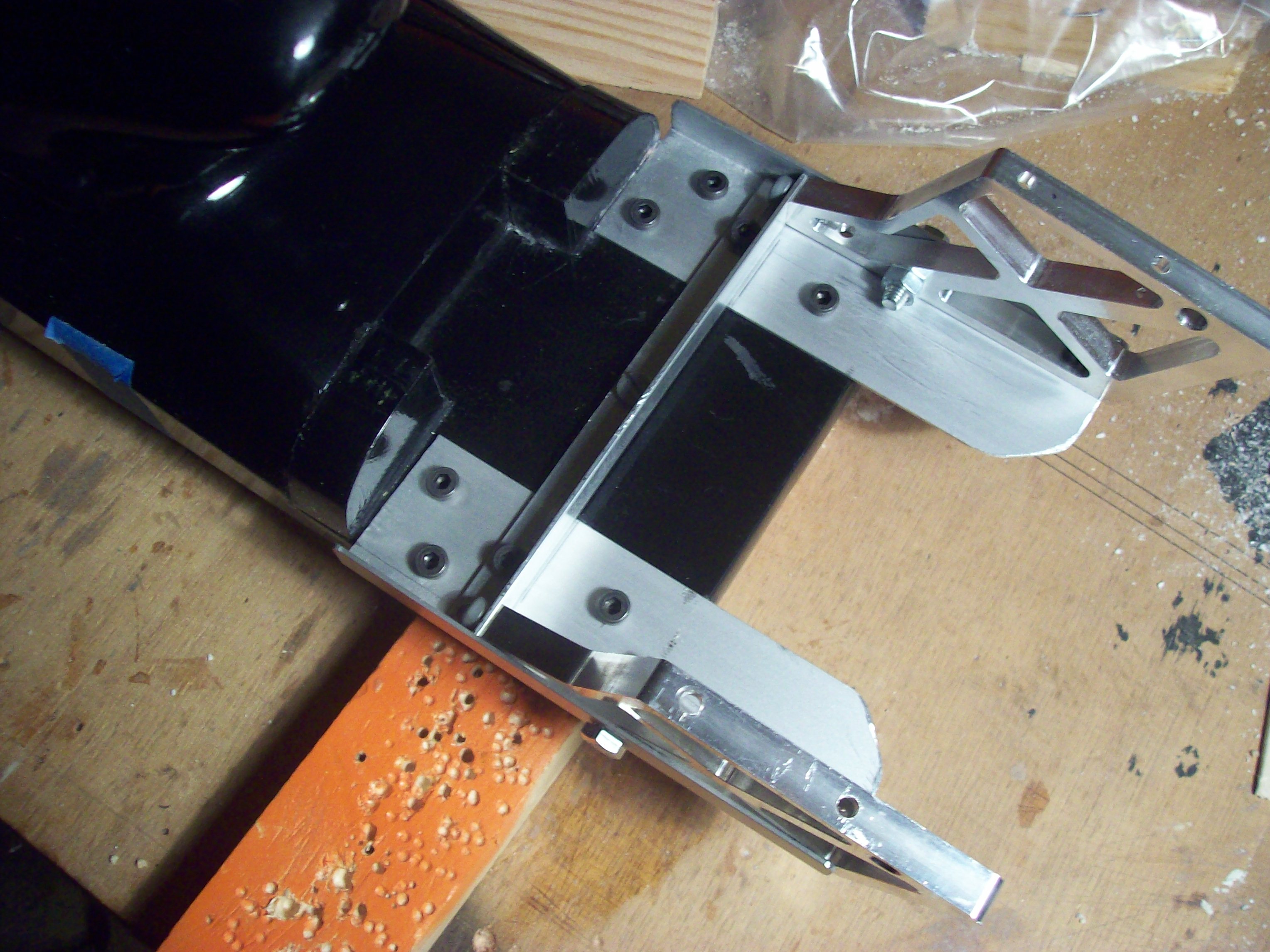 C'est un support CNC en alu (Dreamworks Model) avec 5° d' inclinaison + alu du commerce avec 17 points de fixation (4 par support CNC et 9 pour le plateau) - le plateau est renforcé avec 2 carrés creux en carbone de 6mm (traversant le fuselage avec le plateau) et 10cm d'acier 4mm au niveau du point de fragilisation (plateau/cellule ...à l'intérieur des carrés en carbone) celés avec une contre fiche en CTP multi de 5mm (collé à l'hysol 9462)f15mig27 a écrit :La vache...sacré support.