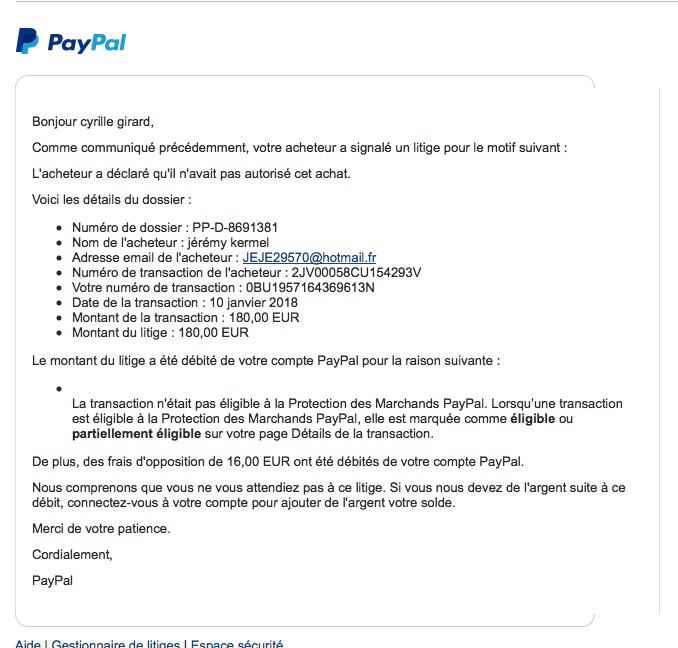 Paypal m'informe qu'il a fait opposition auprès de sa banque, disant qu'il n'a jamais autorisé ce versement !!!