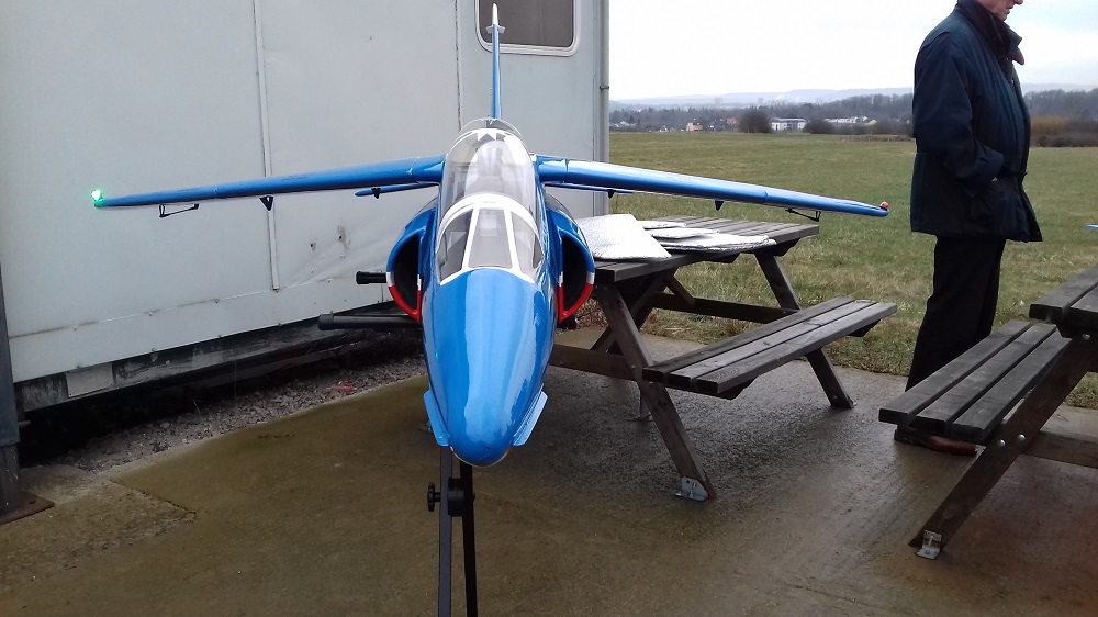 Suivant les indications de René, 13.5 kg, mais j'en doute , moi je serai plutôt vers 1kg au dessus , ma peinture est bi-composant , mat, plus une couche de vernis , mes stickers sont à l'échelle , fait par un pro , il sera motorisé avec un 16k , mais un 12kg suffit largement je préfère avoir de la puissance en réserve, pour peut-être un autre jet , je vous tiendrais au courant concernant la suite , il est terminé au niveau radio, servos, train rentrant, tout est OK, j'attends la bulle pour terminé la peinture du fuselage , premiers essais , printemps 2018 à DOUZY