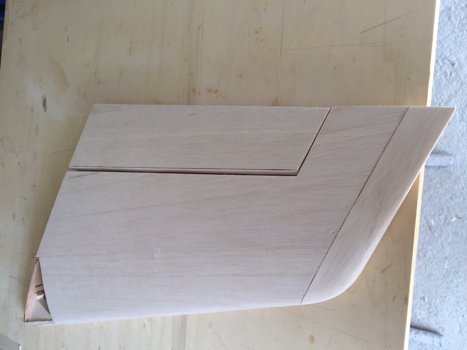 Bonjour a tous, donc aujourd hui fin de la derive: apret, poncage. L apret carrossier laisse vraiment une surface parfaite une fois poncé, mais il est tres lourd donc mon conseil est de poncer jusqu a l apparition, par transparence, du bois. On peut voir sur une photo un petit defaut sur la pointe de la derive (côte bord de fuite) le vent a fait tomber la derive a cet endroit :o j ai dû mettre un peu de mastic carrossier qui n a pas recu d appret mais ca ne devrait pas se voir. J ai recu le mastic de finition que je vais utiliser sur le fuselage, je vous dirai ce que j en pense tres prochainement. Photos