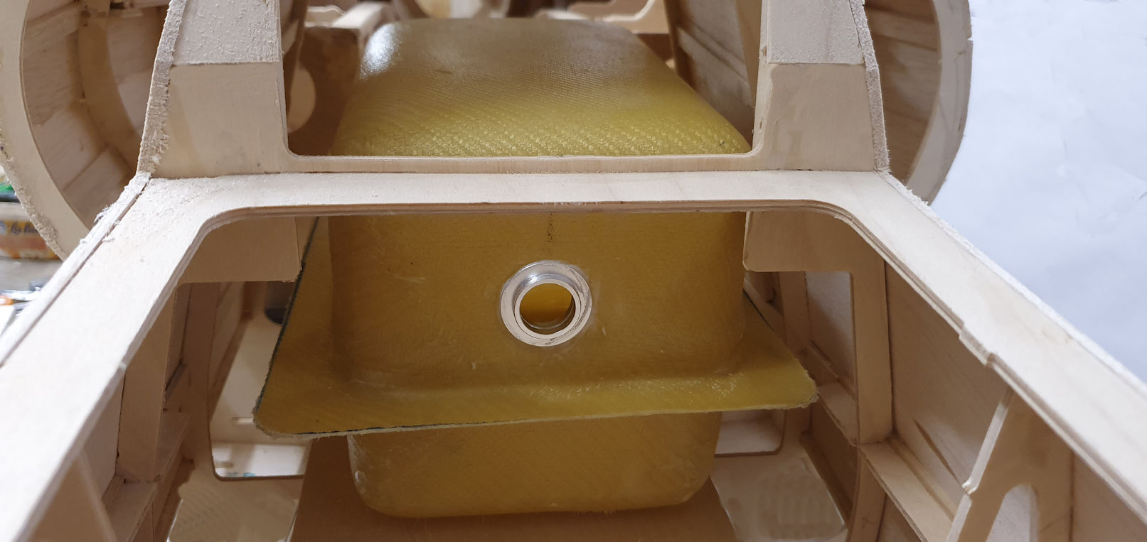 Le réservoir d’une capacité de 4 litres est placé au centre de gravité, il est réalisé en kevlar en deux parties. Ce réservoir a été réalisé par un ami modéliste de longue date (35 ans) Jean Pierre Favard qui après avoir vue le plan du L39 souhaitait participer à ce projet. Maîtrisant les composites, il se proposa pour la réalisation du réservoir centrale et ceux des bouts d’ailes. Un mois fut nécessaire pour la réalisation des masters et le tirage des différentes pièces ci jointes. Très enthousiasmé par ce modèle, il vient d’entreprendre la réalisation d’un master du fuselage, projet à suivre.