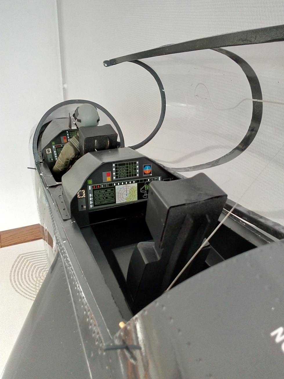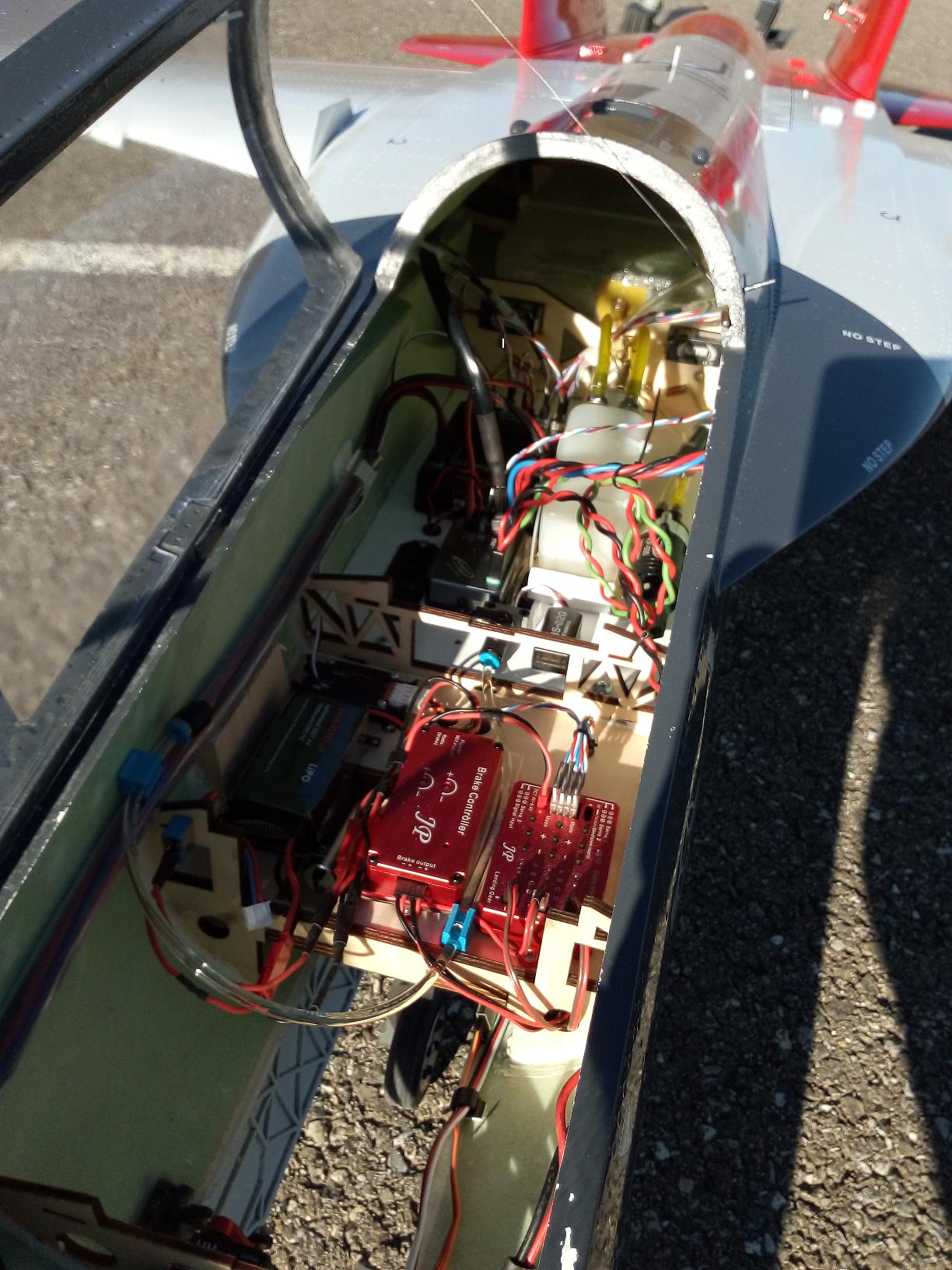 le cockpit semi maquette est très sympa mais occupe pas mal de place d'où une installation de l'équipement embarqué un peu au chausse pied malgré le volume du fuselage.