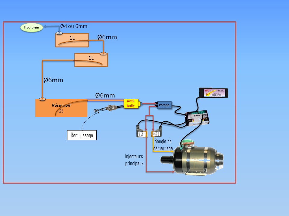 Je suis en train de monter un F16 TOPRC dans cet avion il y a trois réservoir, j'ai bien compris le principe de branchement grâce à vos schéma merci, mais je me pose juste une question dans l'avion les deux reservoir lateraux sont plus bas que le reservoir central est ce que cela va poser un probléme?.