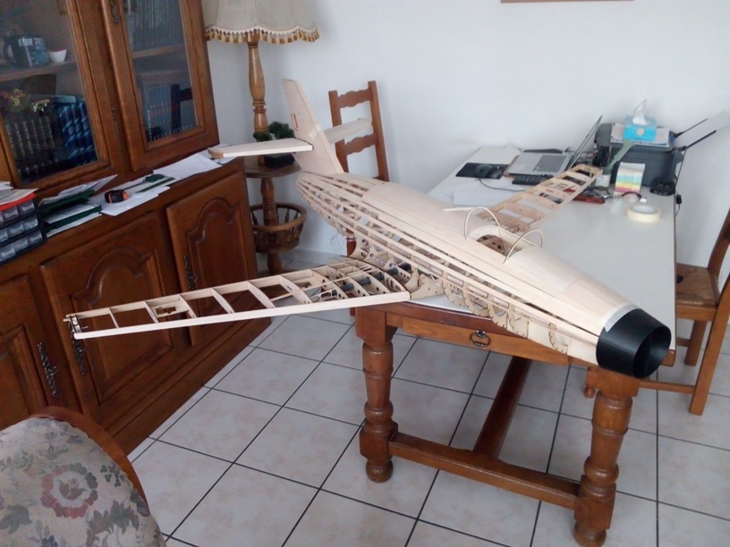 - les ailes et les empennages sont coffrées en balsa plume de 15/10 entoilées Oracover